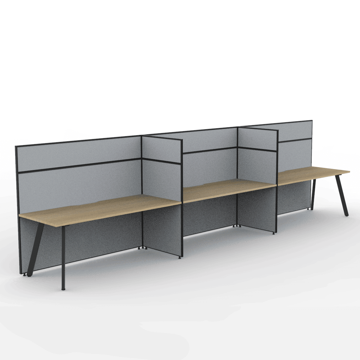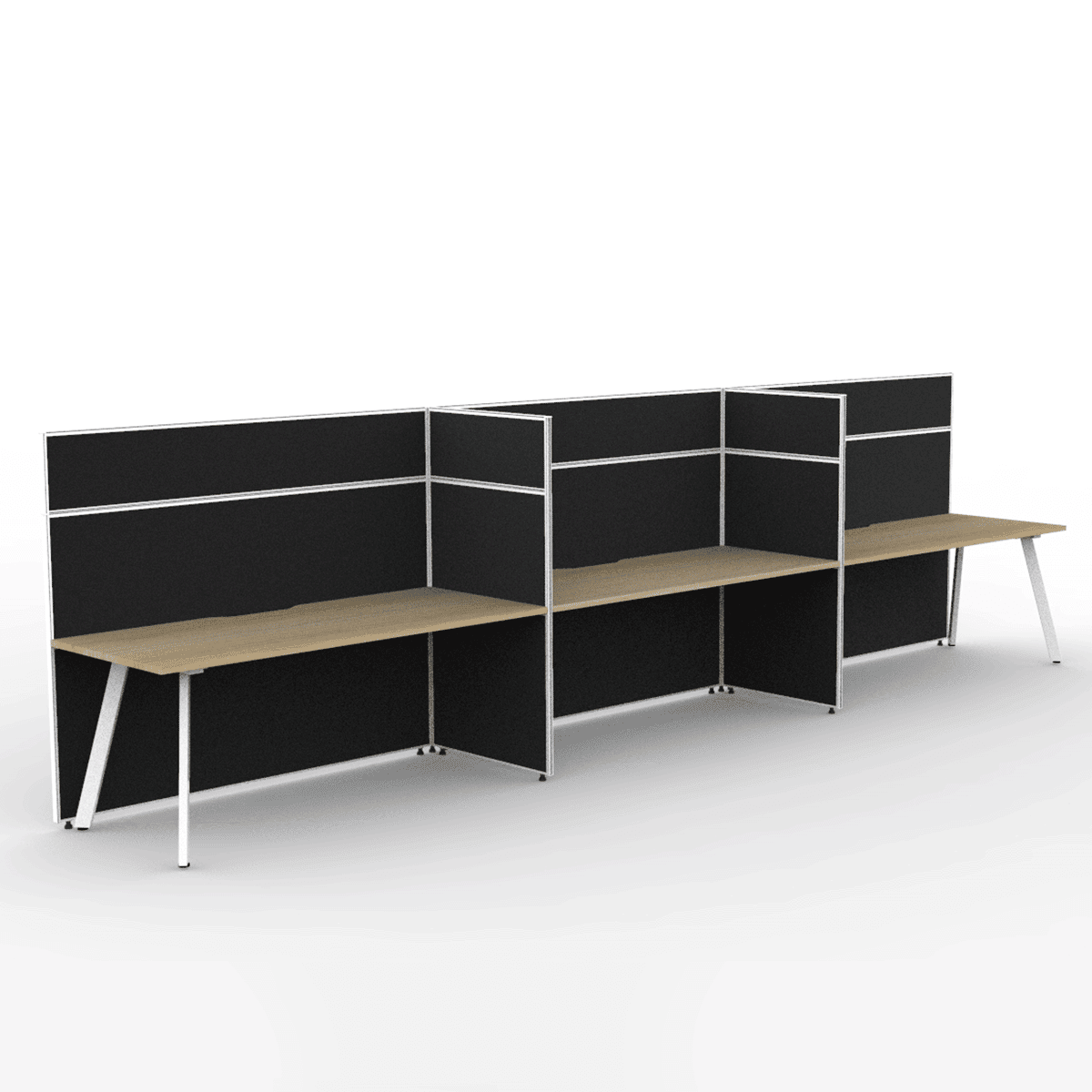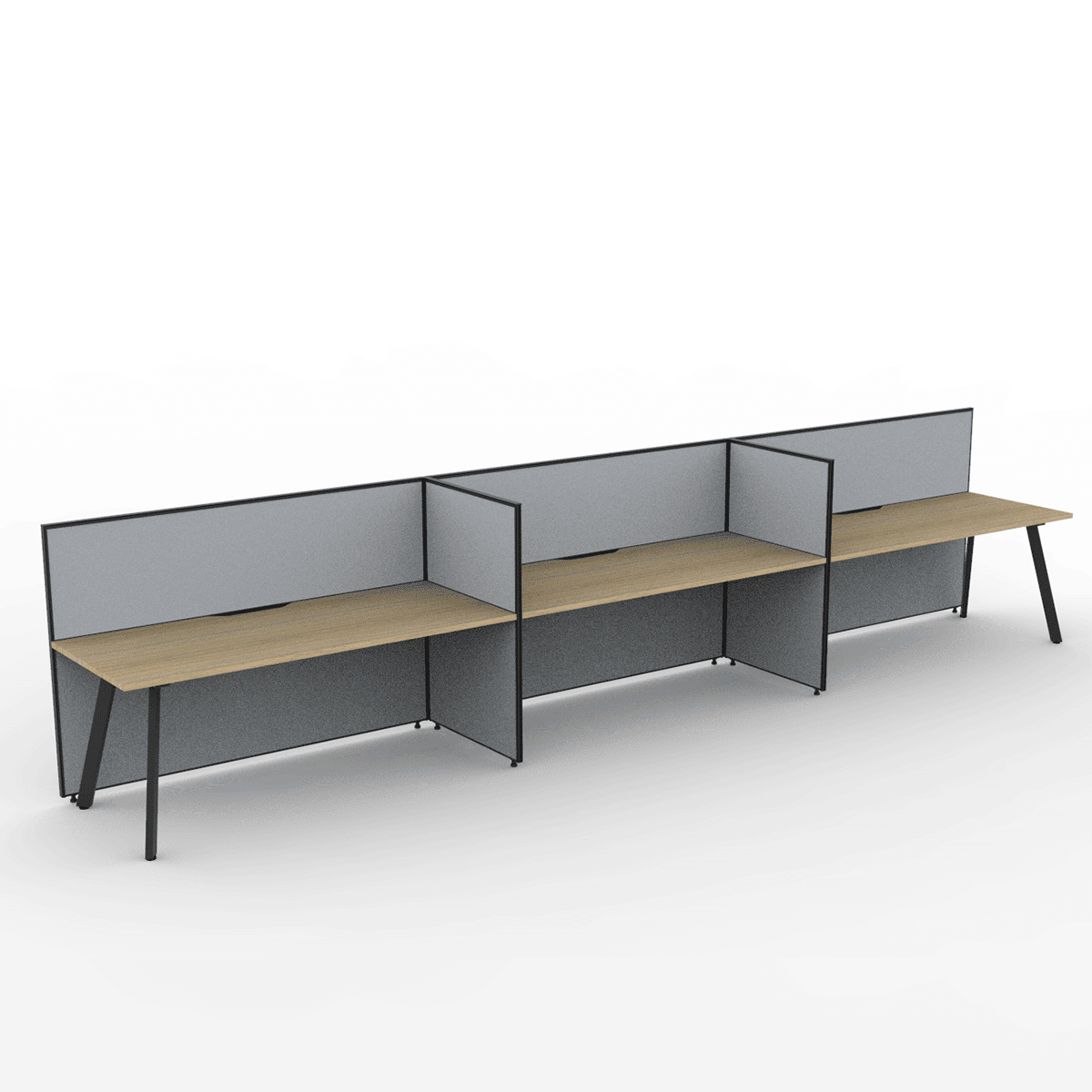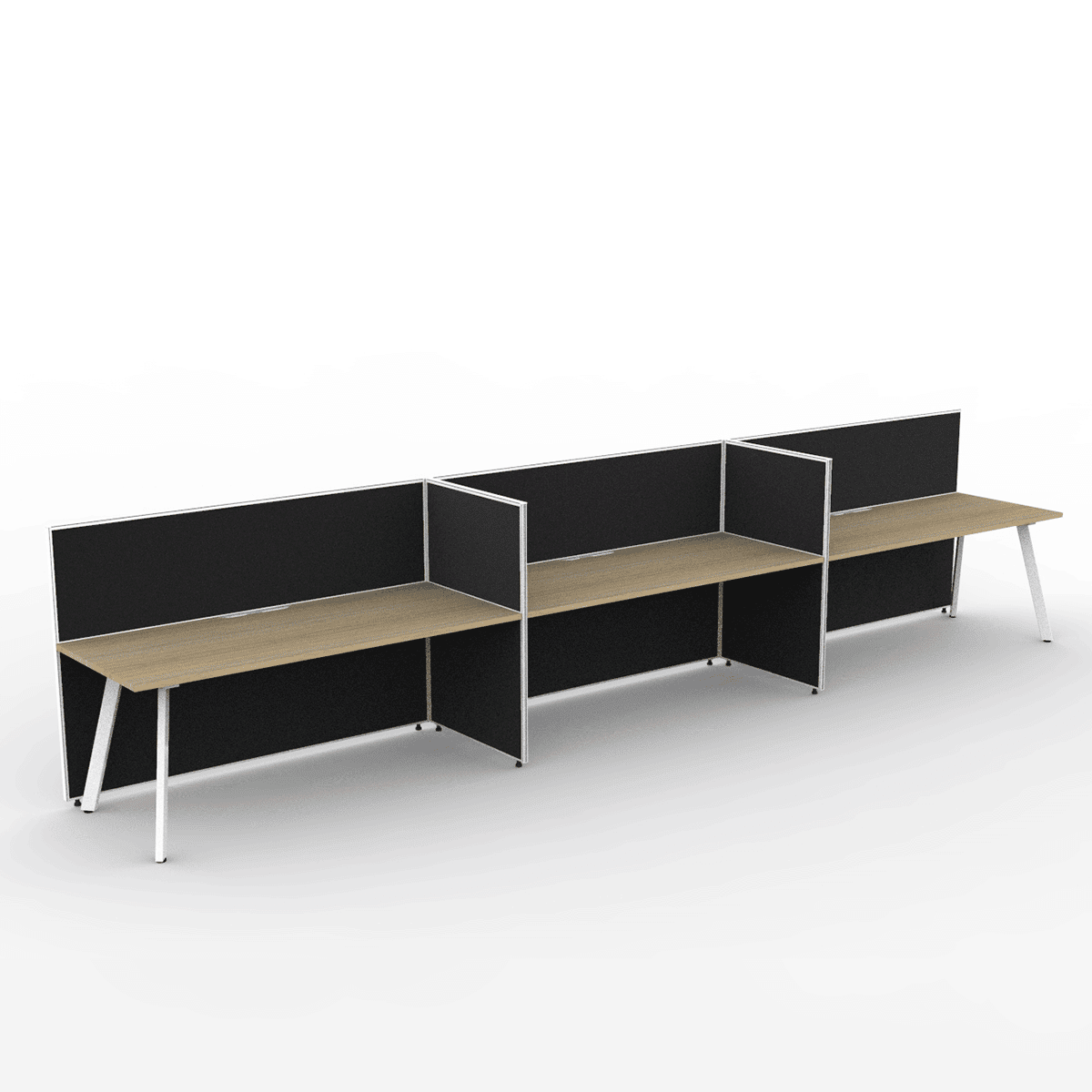 Alto Screen 3 Person Single Sided Desk: Versatile Workspace with Adjustable Screen Heights and Acoustic Qualities