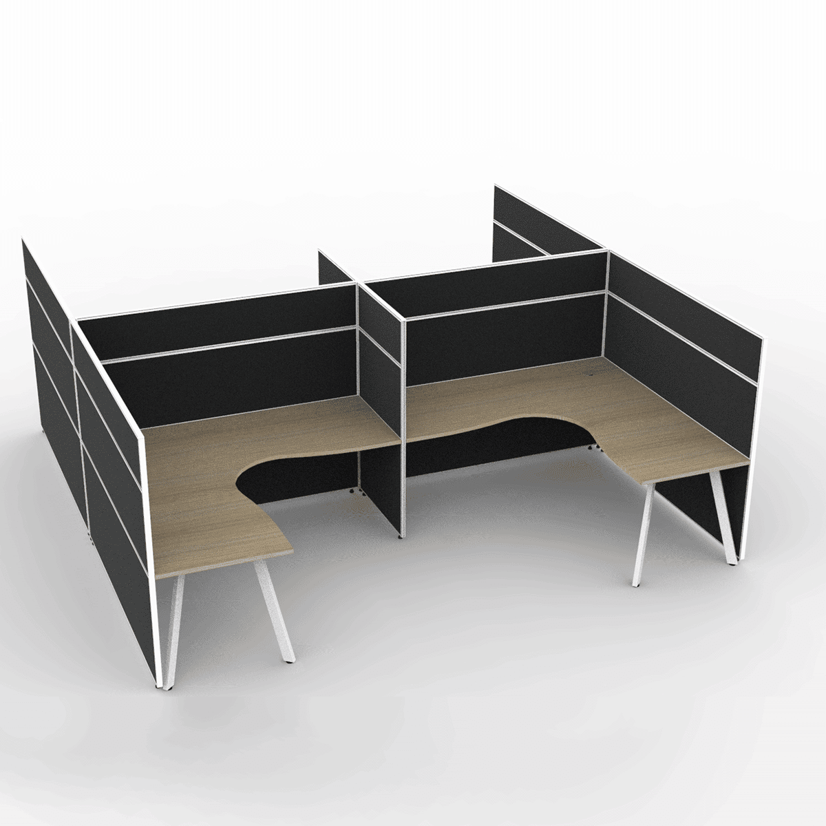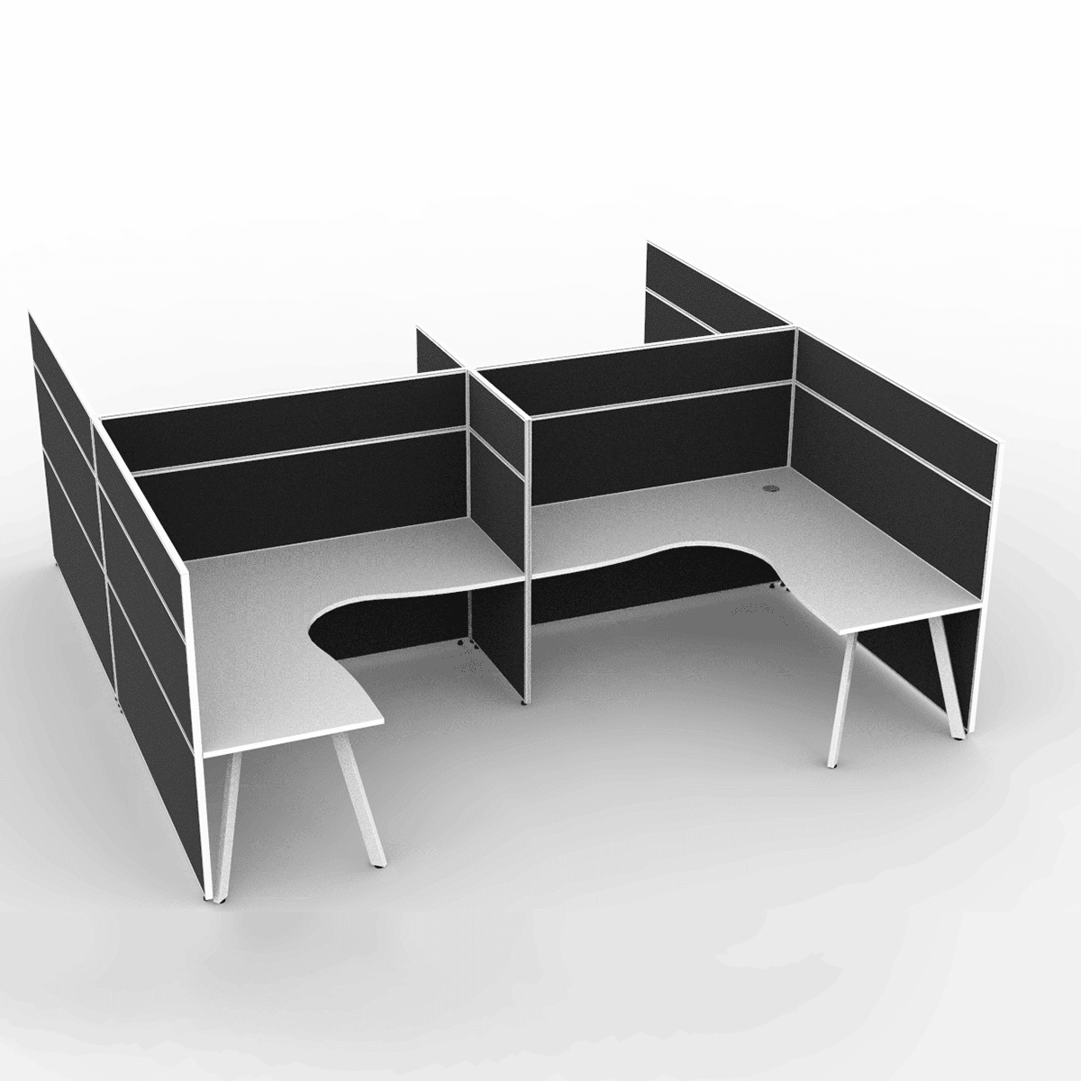 Alto Screen 4 Person H Shape Workstation: Flexible Privacy with Pinnable Acoustic Screens