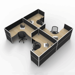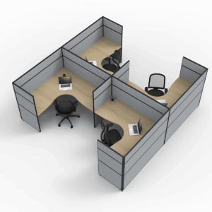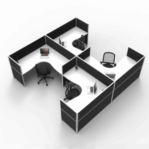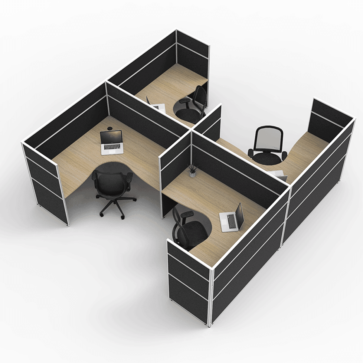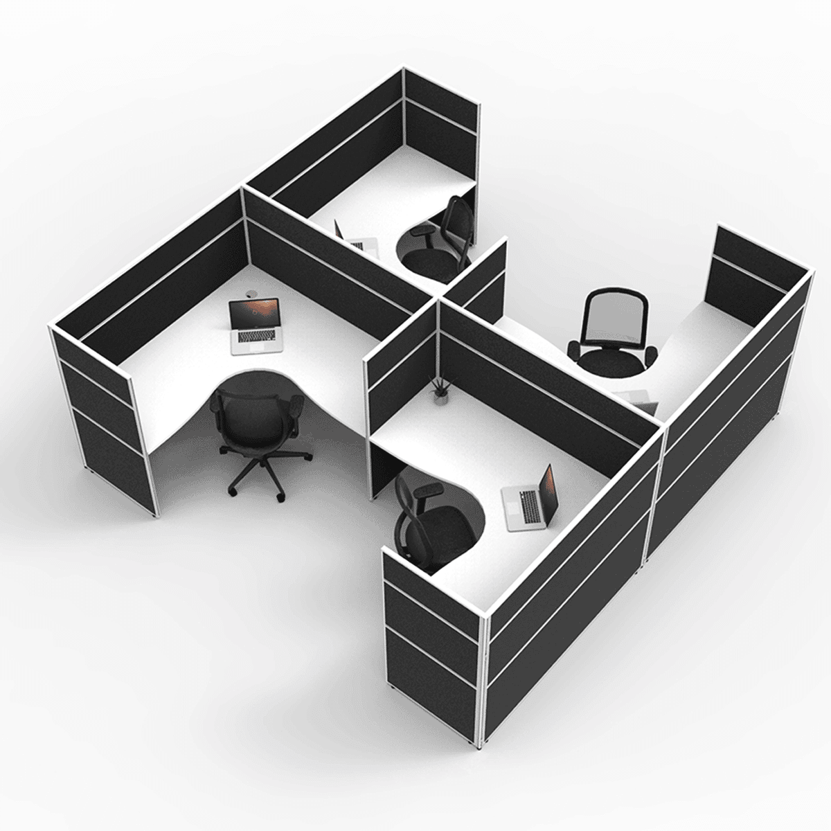 Alto Screen 4 Person H Shape Workstation With End Screen