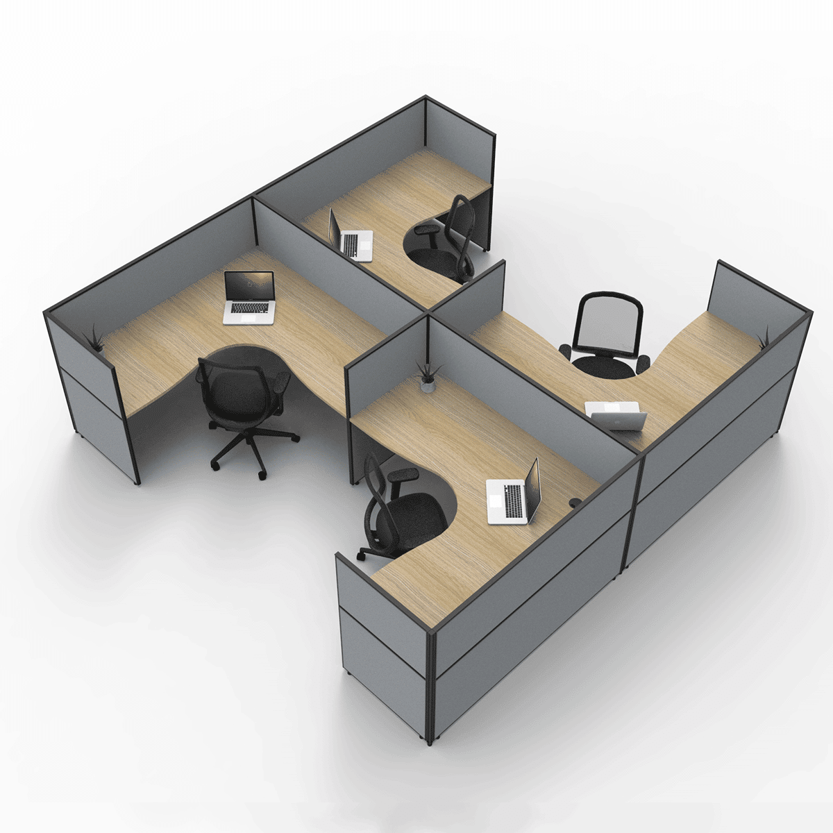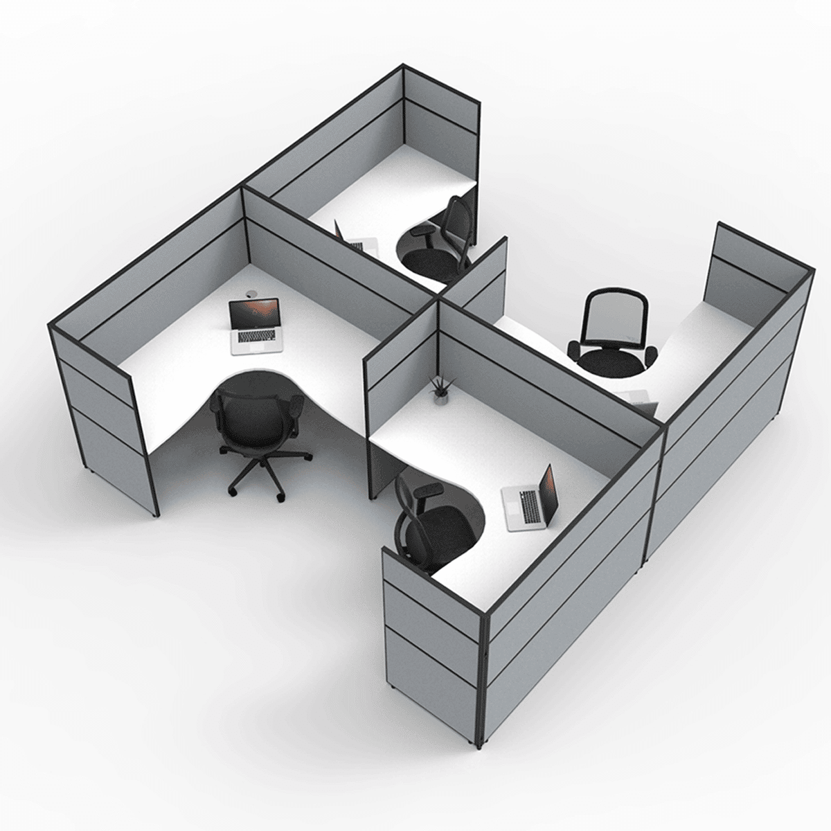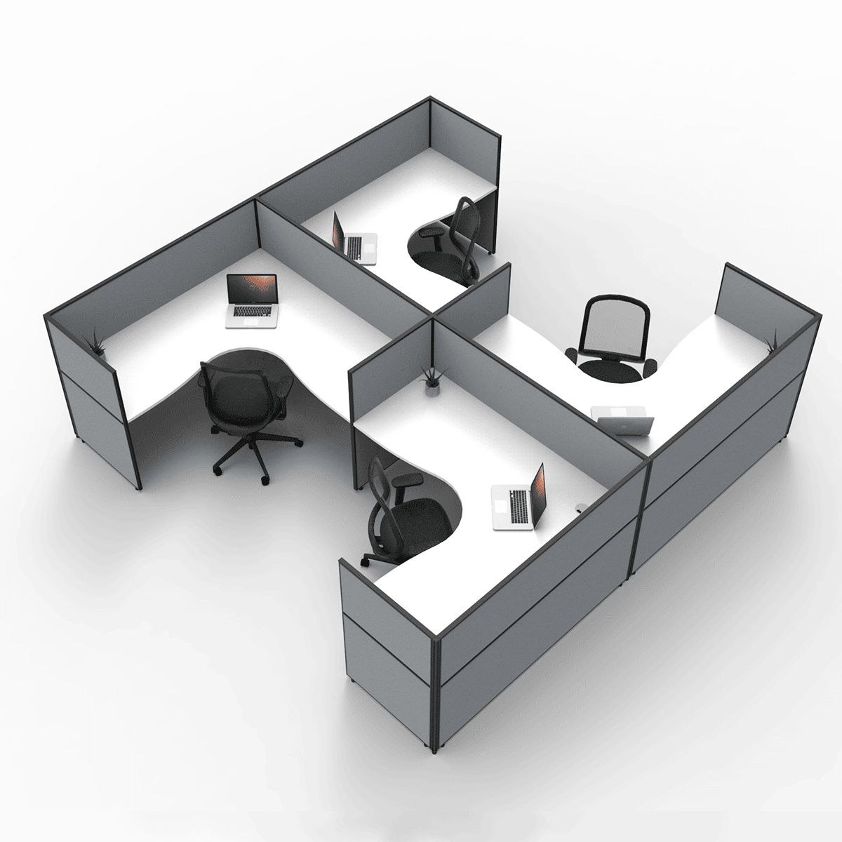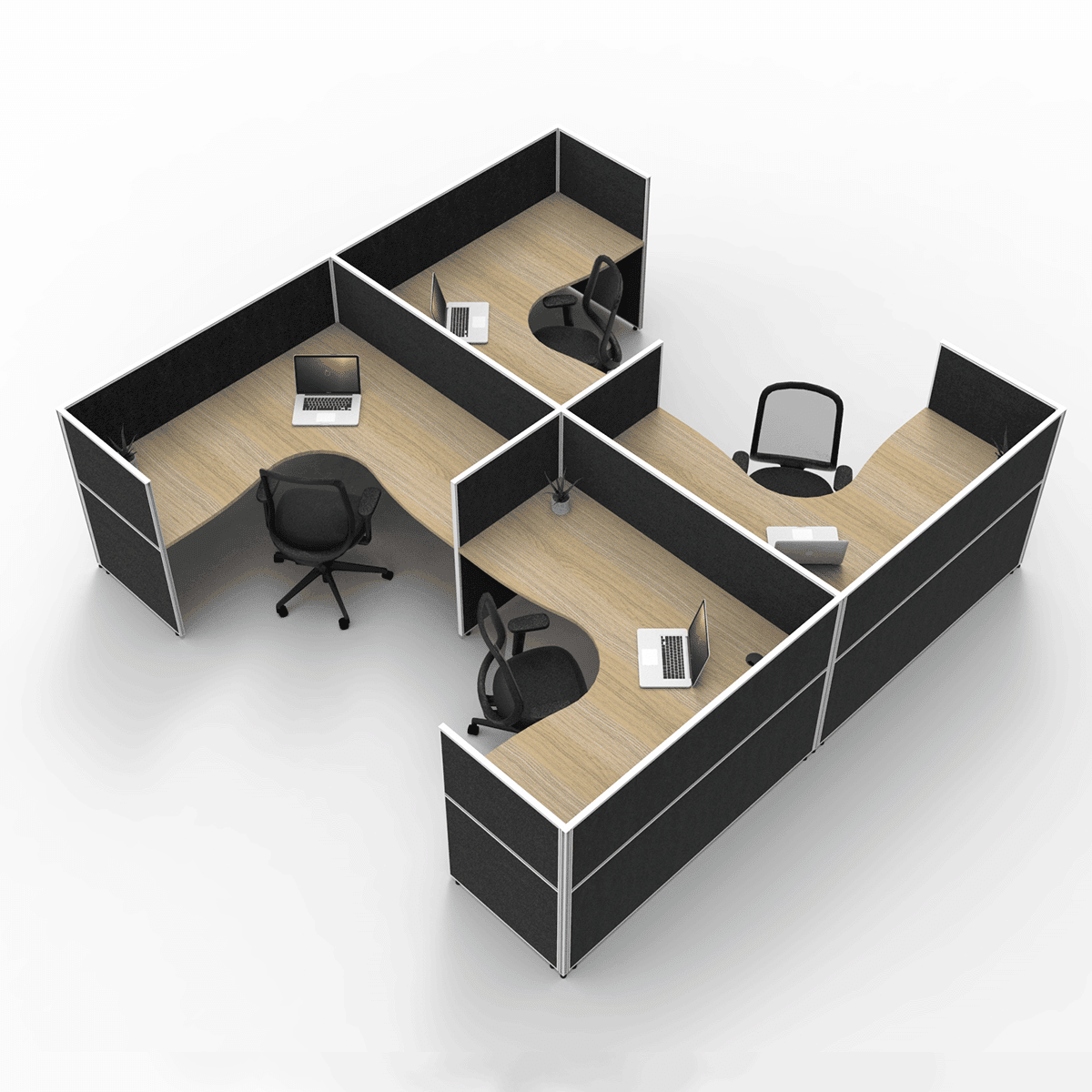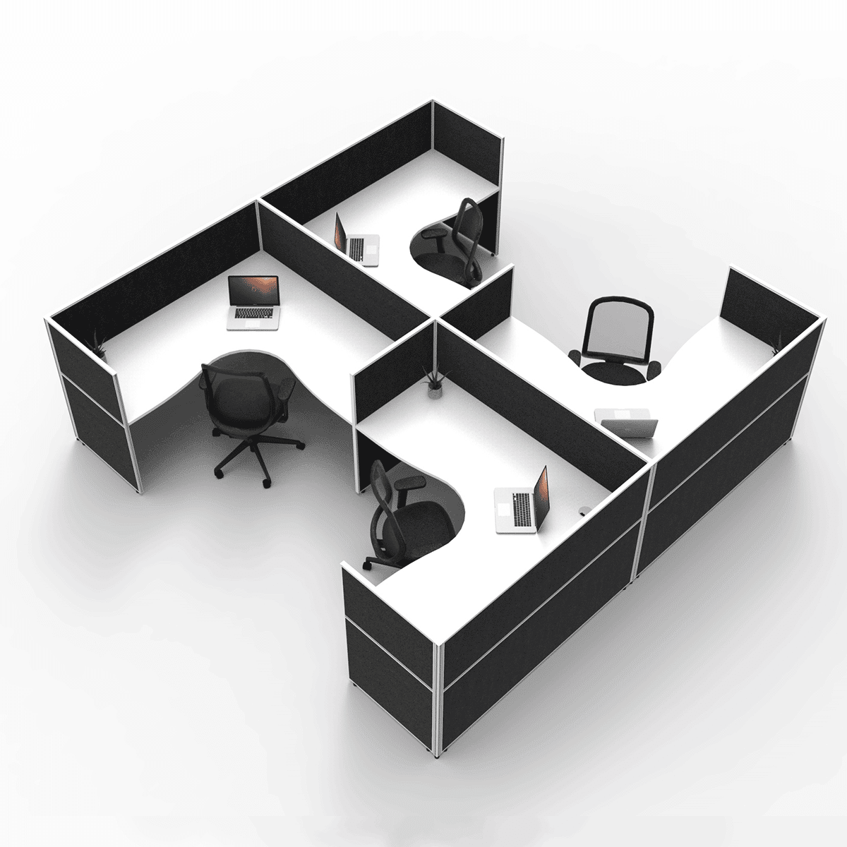 Alto Screen 4 Person H Shape Workstation: Customizable Heights and Pinnable Screens for Enhanced Privacy