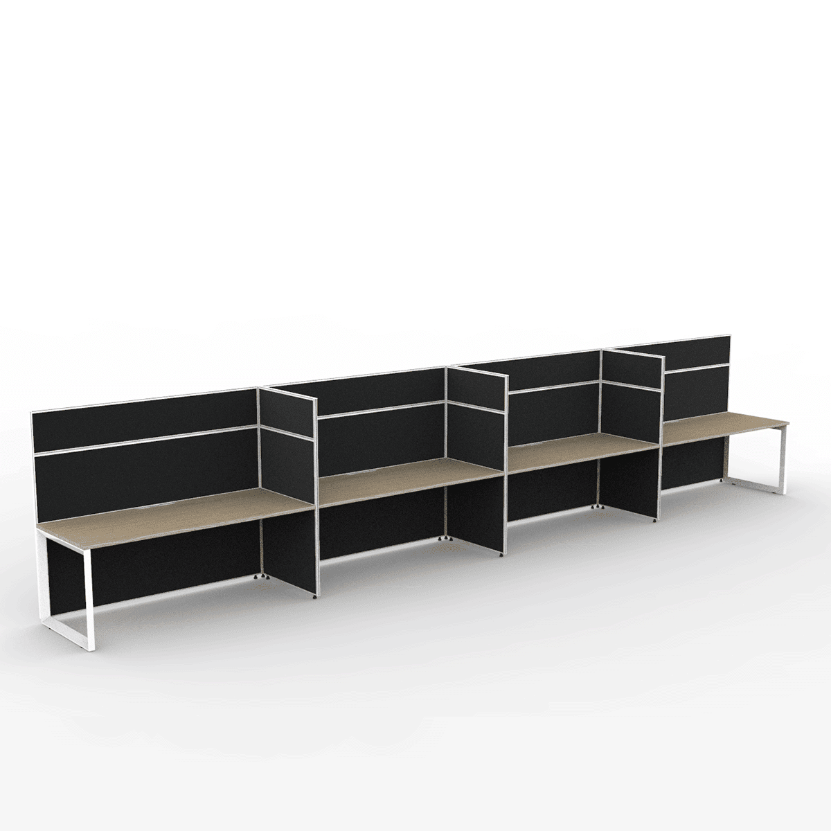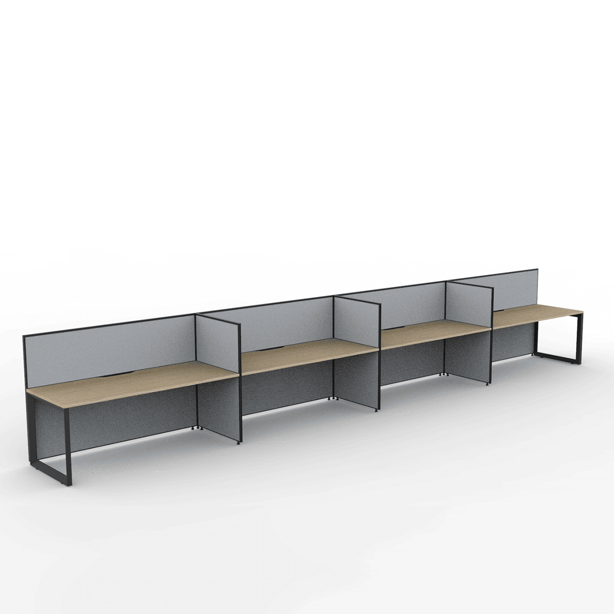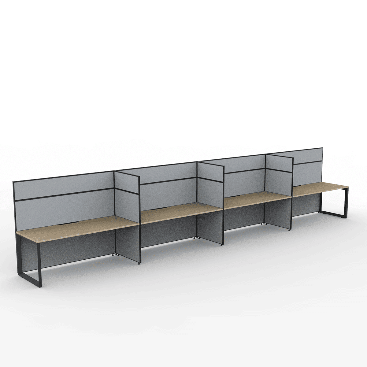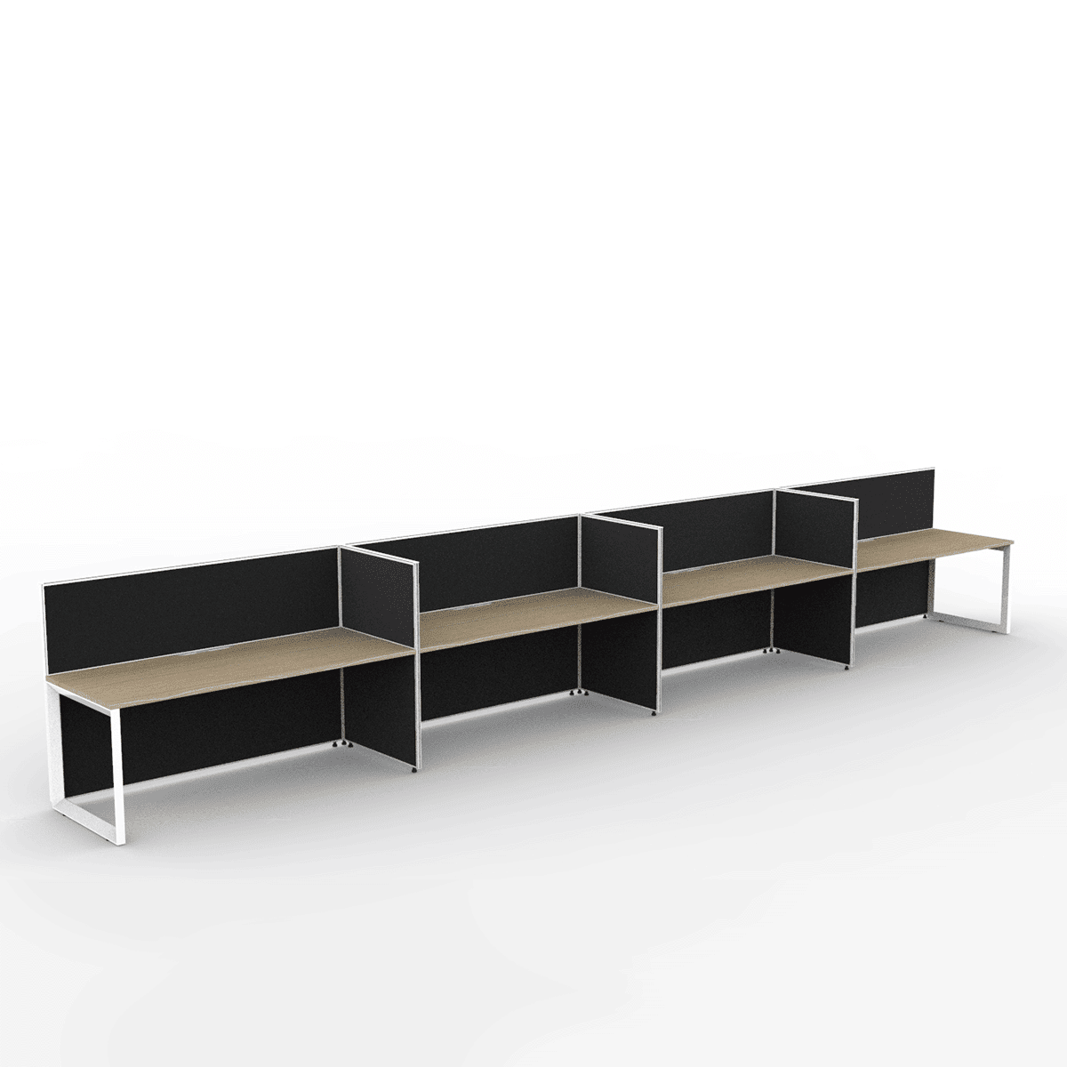 Alto Screen 4 Person Single Sided Desk with Loop Legs: Designed for Privacy and Acoustic Quality