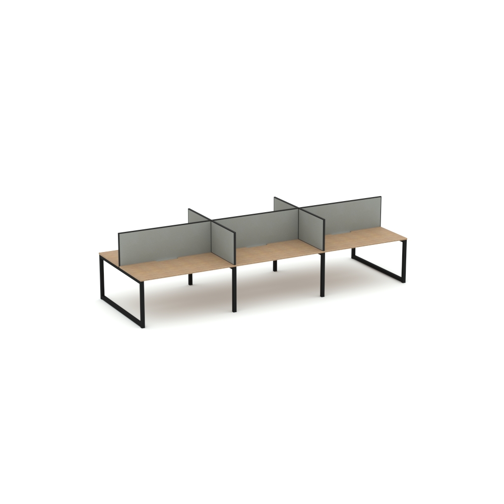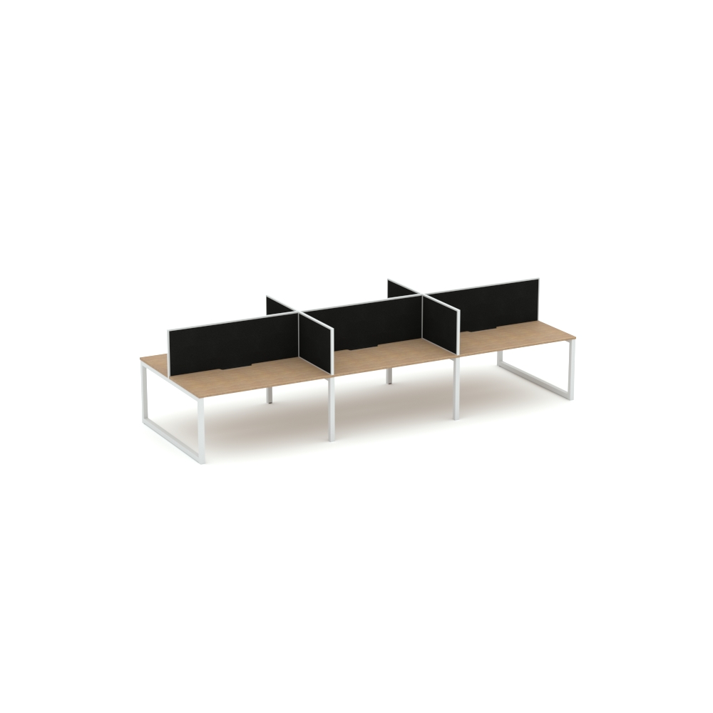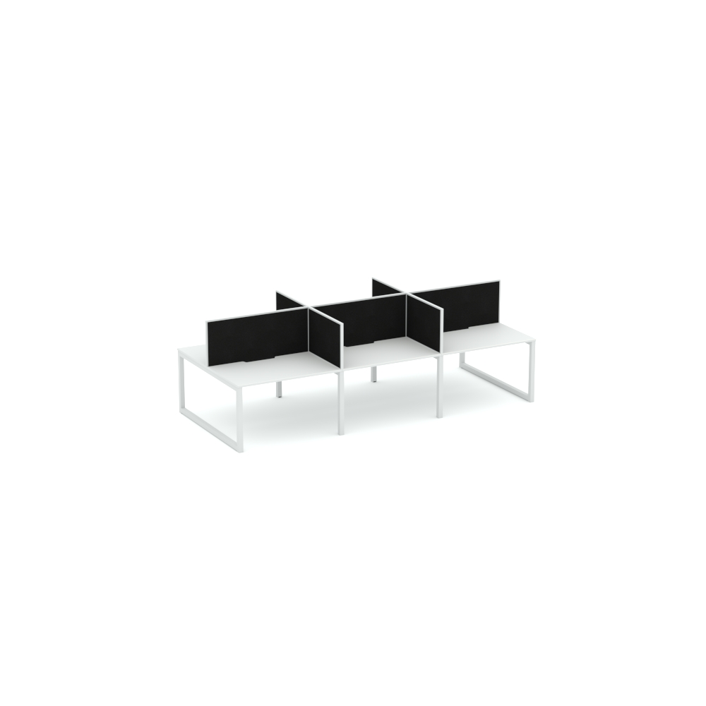 Apex 6P Double-Sided Desk: Modern 6-Person Workstation with Loop Legs and Desk Screens for Privacy