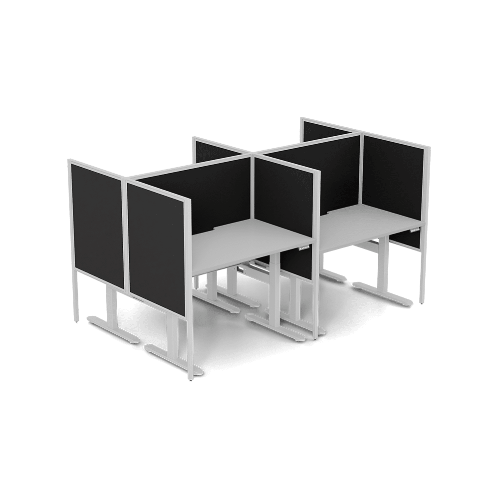 Our Quiet screens come with this range, to provide sound dampening and privacy for the user. The height of this screens allows it to provide a modesty panel for the user as well as providing above desk privacy. They are mounted to the frame of the desk, so they stay stationary while the desk is moving up and down. They are also pinnable, and the trim matches the colour of the frame of the desk.
