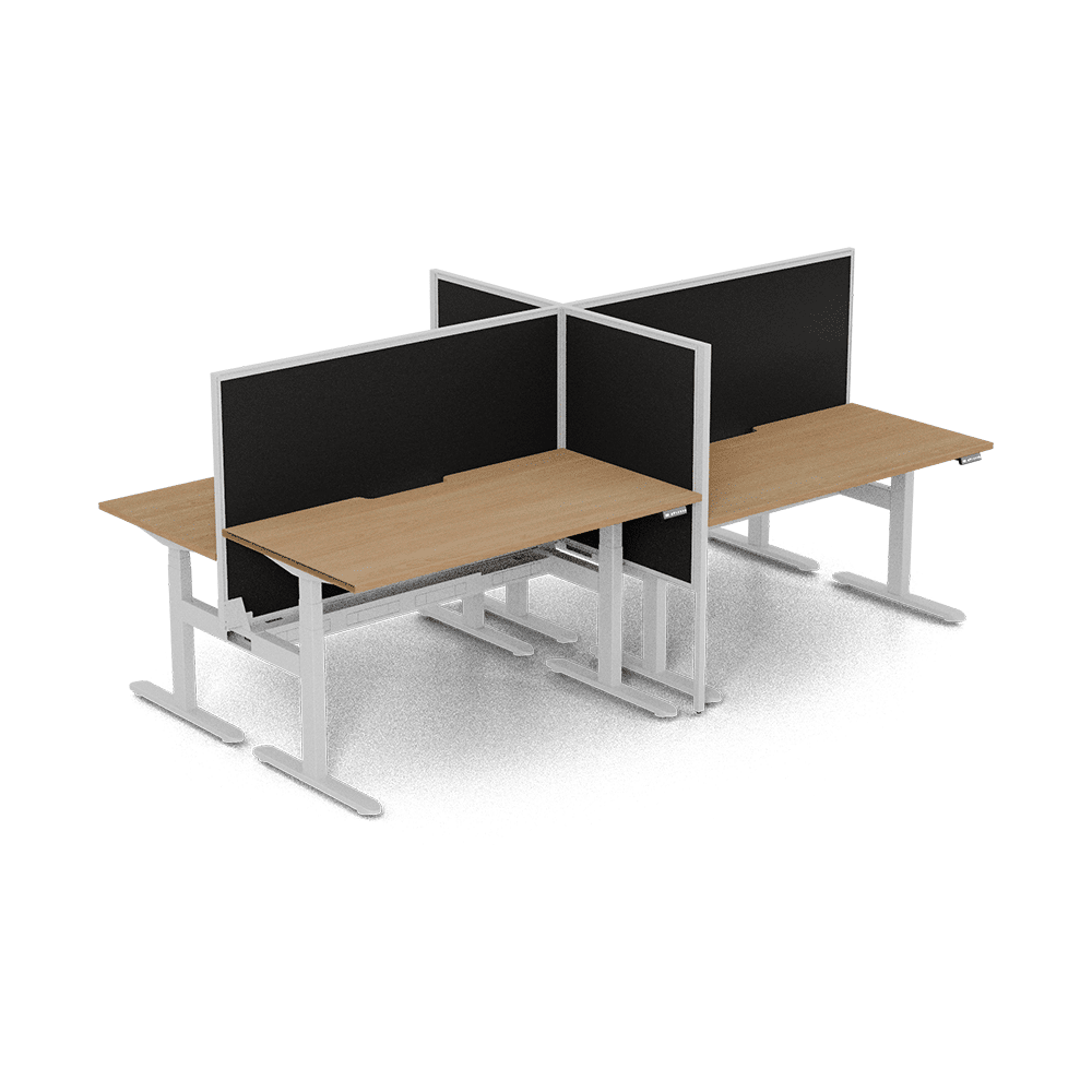 Fitting out an office with the latest in ergonomics haws never been easier with our new Ascend Height Adjustable Desk Pod range. We have a variety of configurations from 2 person to 8 person desk pods, designed to create a run of height adjustable desks with mid-height privacy screens. This is a perfect middle ground for a height adjustable desk pod, providing coverage and quiet while still maintaining a more open feel than full-height screens offer. These are highly versatile with many options available to choose from, including end screen options and cable tray options.