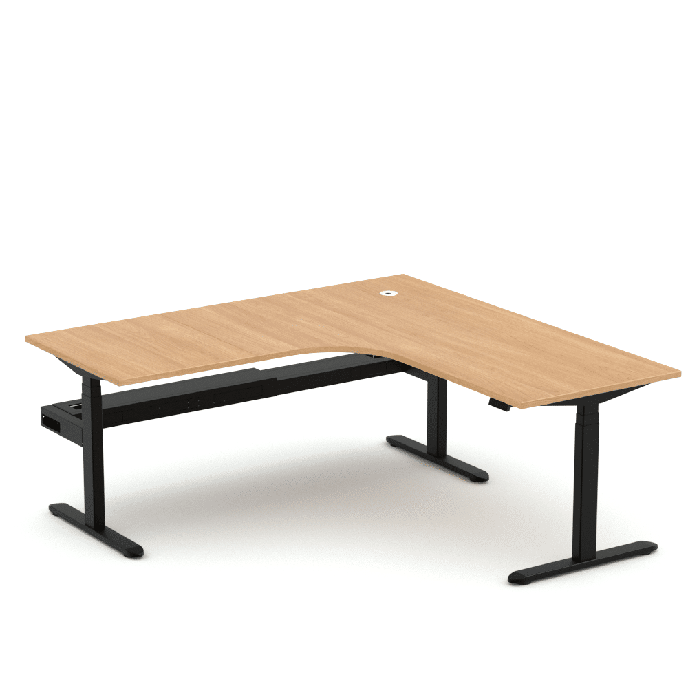 The Ascend Corner workstations feature a triple motor underframe with 3 stage legs to maximise the range of height adjustment. With a press of the 4 preset LED control panel, the desk can be adjusted from 665mmH all the way to 1315mmH, carrying up to 140kg.