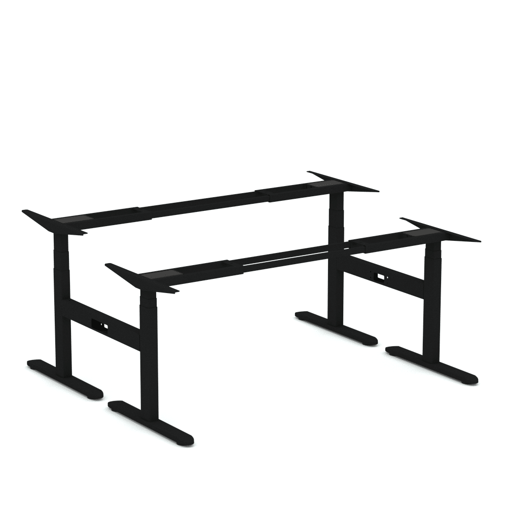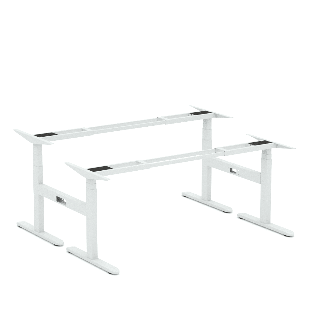 The Ascend Delta desk frame features a dual motor underframe with 2 stage legs per user to maximise rigidity over the whole height range. With a press of the 3 preset LED control panel, the desk can be adjusted from 710mmH all the way to 1160mmH, carrying up to 140kg.