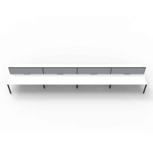 - 7200mm W x 780mm D x 730mm H (Overall), 1800mm W x 750mm D x 730mm H (Per User)
