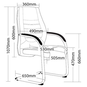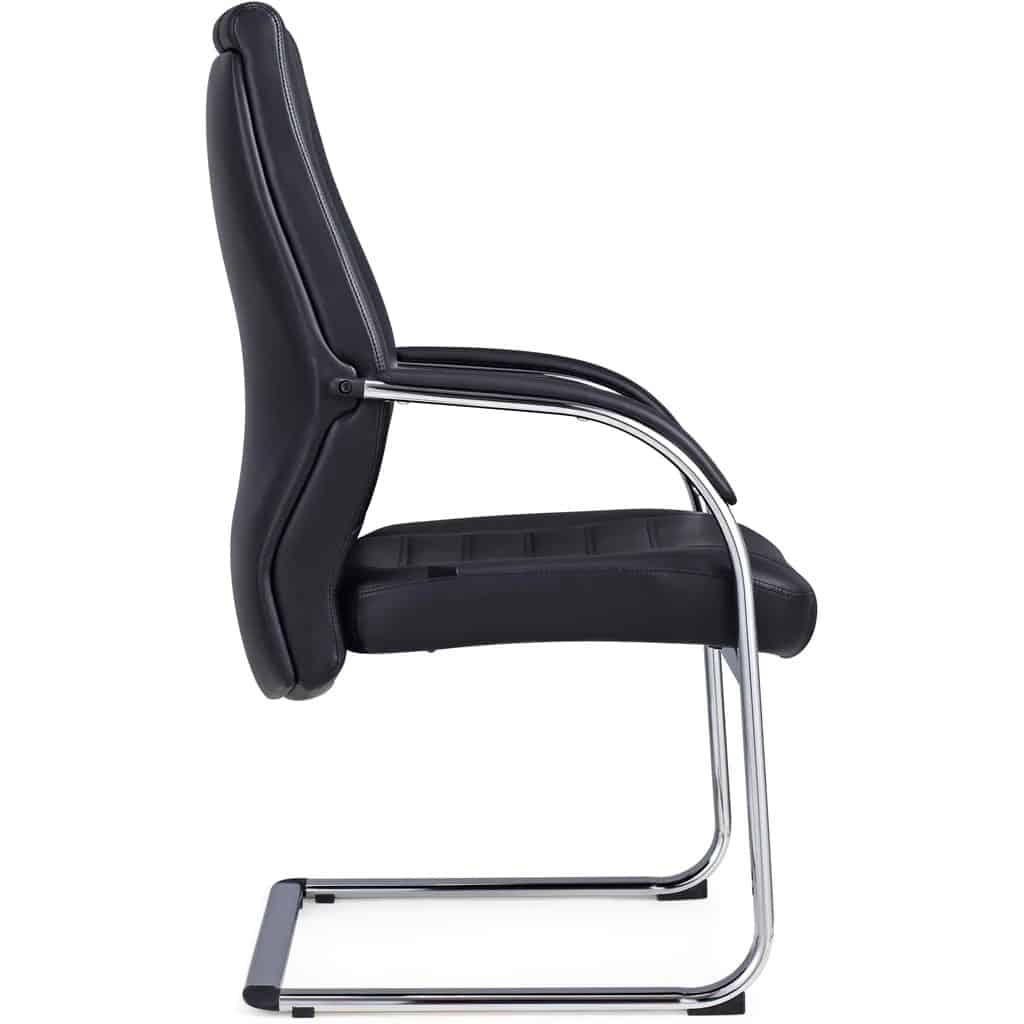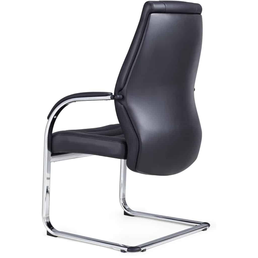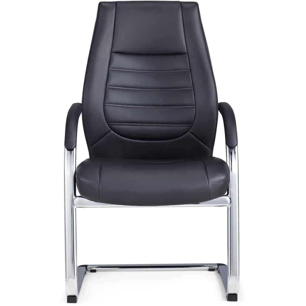 If you enjoy the look and feel of the Bentley Executive Chair, but are looking for something a bit more casual, the Bentley Visitor Chair is the match for you. It has fixed padded arms attached to a chrome cantilever base, making it a less office-y looking chair. It is made from the same high density foam and black PU, and also comes with rubber feet to avoid damaging flooring.