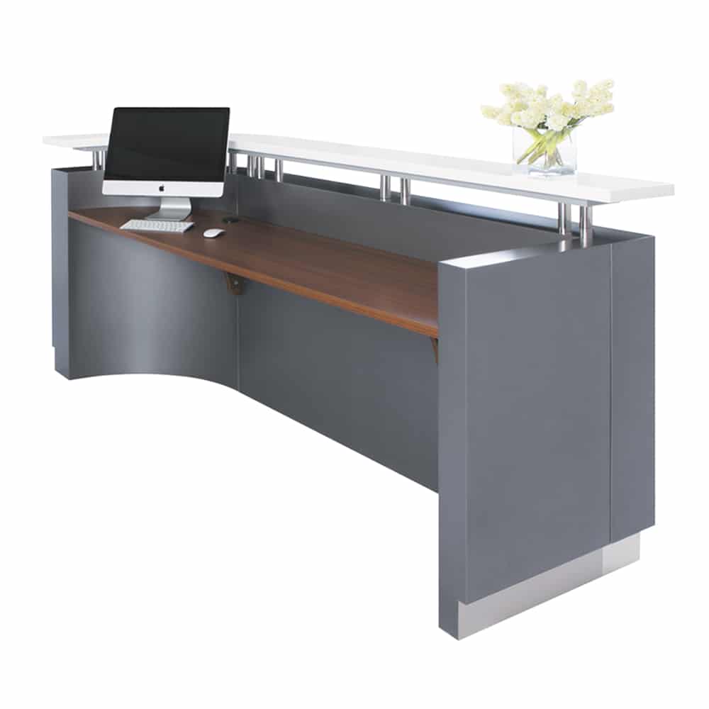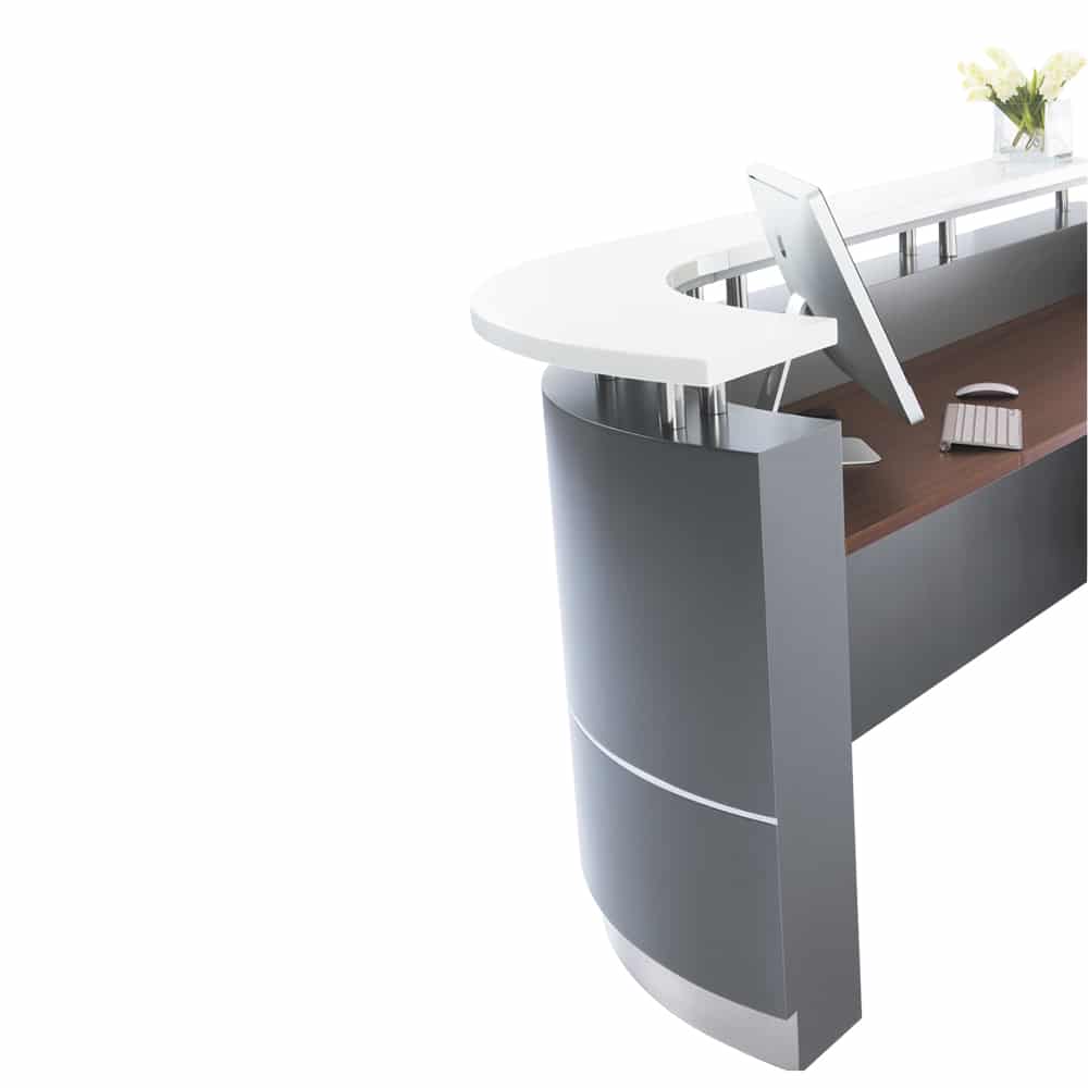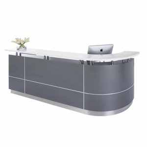 • Contemporary and classy reception counter with distinct aluminium trim line design