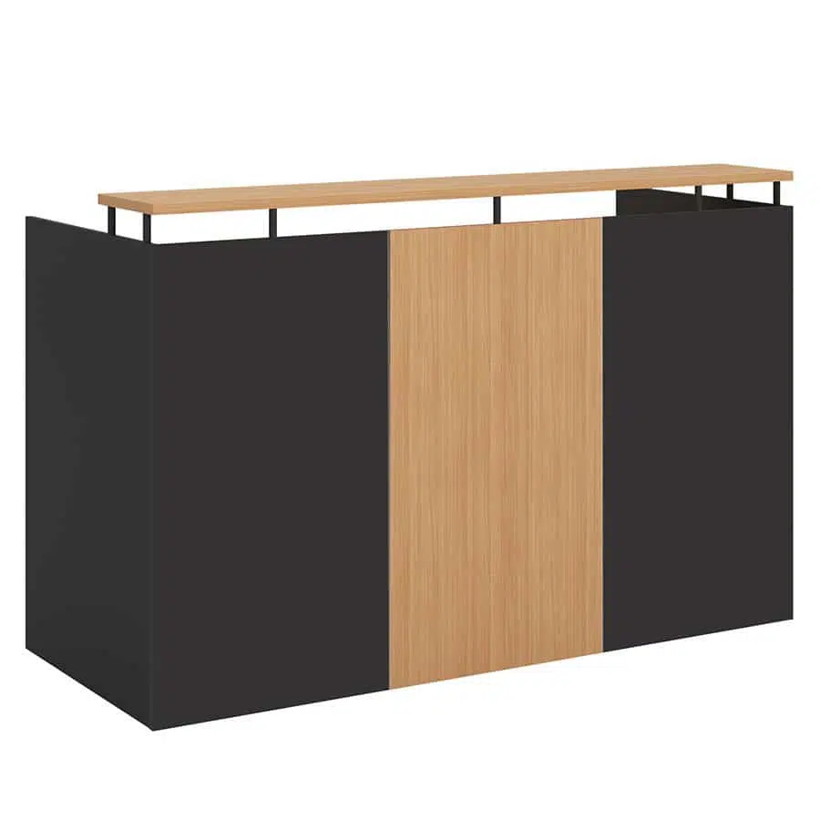 - Comes with a 3 panel front with the desk hob supported on black pillars