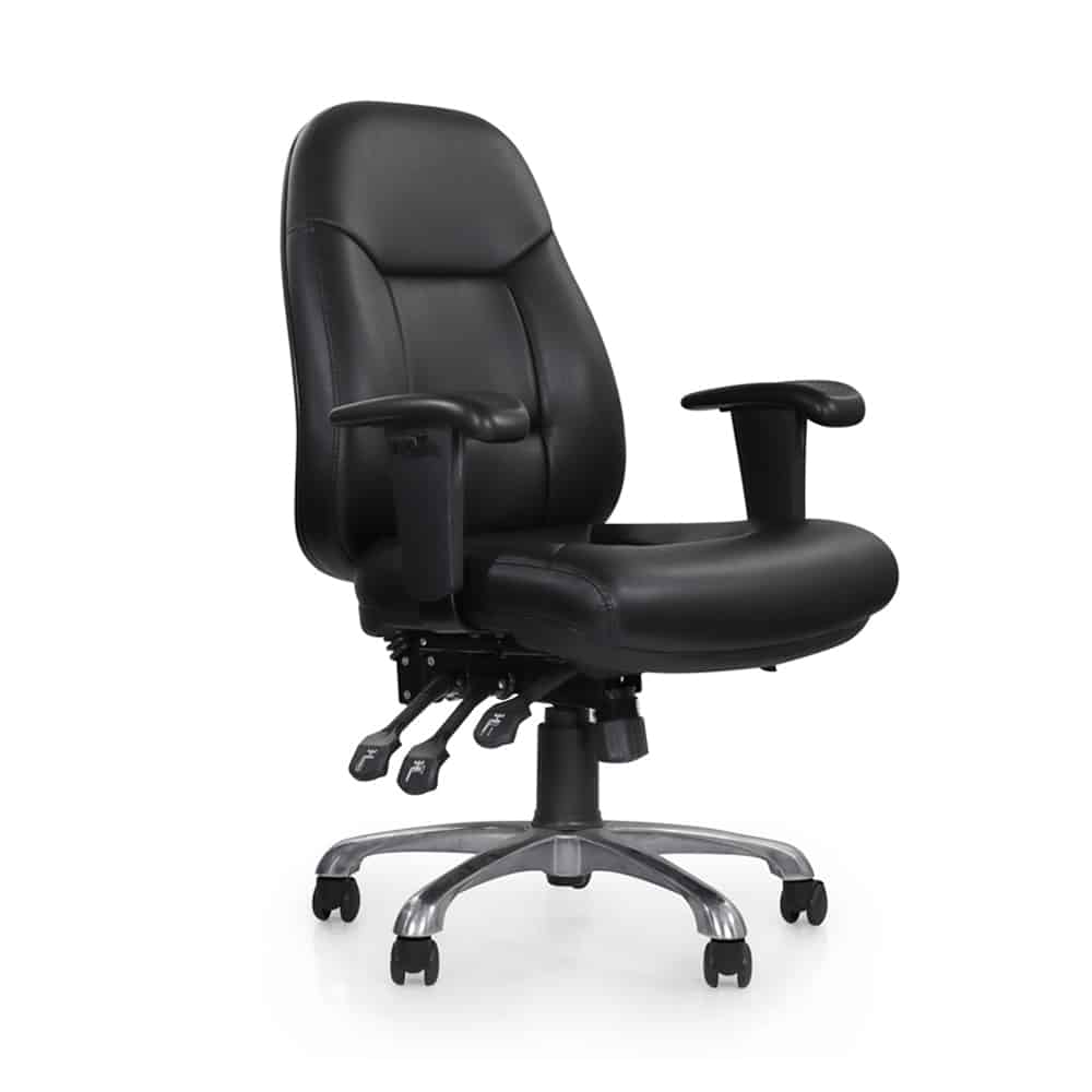 The Chad Office Chair is one of Danny’s most tried and tested office chairs. We started selling the Chad Chair is 2010 and it’s still one of our most reliable chairs. Equipped with seat slide, back tilt, gas lift adjustment, adjustable arms, and seat tilt adjustment, this chair is truly a one chair suits all type of chair. Upholstered in black PU with a chrome base, and patterned stitching on the backrest to add detail, you don’t need to compromise on the look of your chair for functionality. Our Chad chair is a chair that can fit anyone’s needs; a fully ergonomic office chair that looks the part and is made with quality materials to last you.