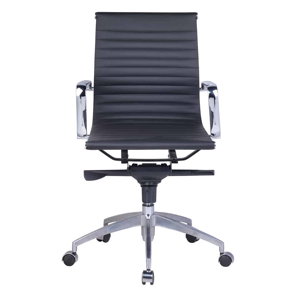 Champ Medium Back Chair: Vinyl PU Upholstery with Ribbed Back Detail and Chrome Arms