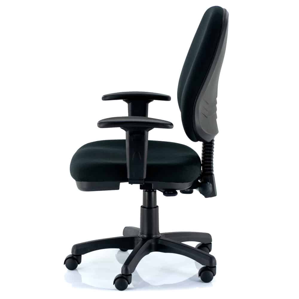 Danny’s Cheeto Ergo Task Chair The Cheeto Ergo is an ergonomic chair with a classic look, no frills and the durability to last plenty of use. Classic, simple design with a low price point make this a great bulk buy, or for personal use. Having a high back gives more comfort than a mid-back, and it is also height adjustable, so you can get the most lumbar support. Other adjustments you can make with the Cheeto are the seat height, the seat tilt and the back tilt, giving it a huge range of motion. It comes with or without height adjustable armrests, and the seat is made from moulded foam to keep you comfortable all day. The Cheeto is one of our best bang for buck chairs, and a perfect example of this is comparing it to our Choice chair. The Cheeto has the same large seat, high back and 3 levered ergonomic mechanism. The only tangible difference is that the Choice has slightly higher quality foam, but it is a third more expensive than the Cheeto. Because of this, the Choice has a 10 year warranty, while the Cheeto has a 5 year warranty.
