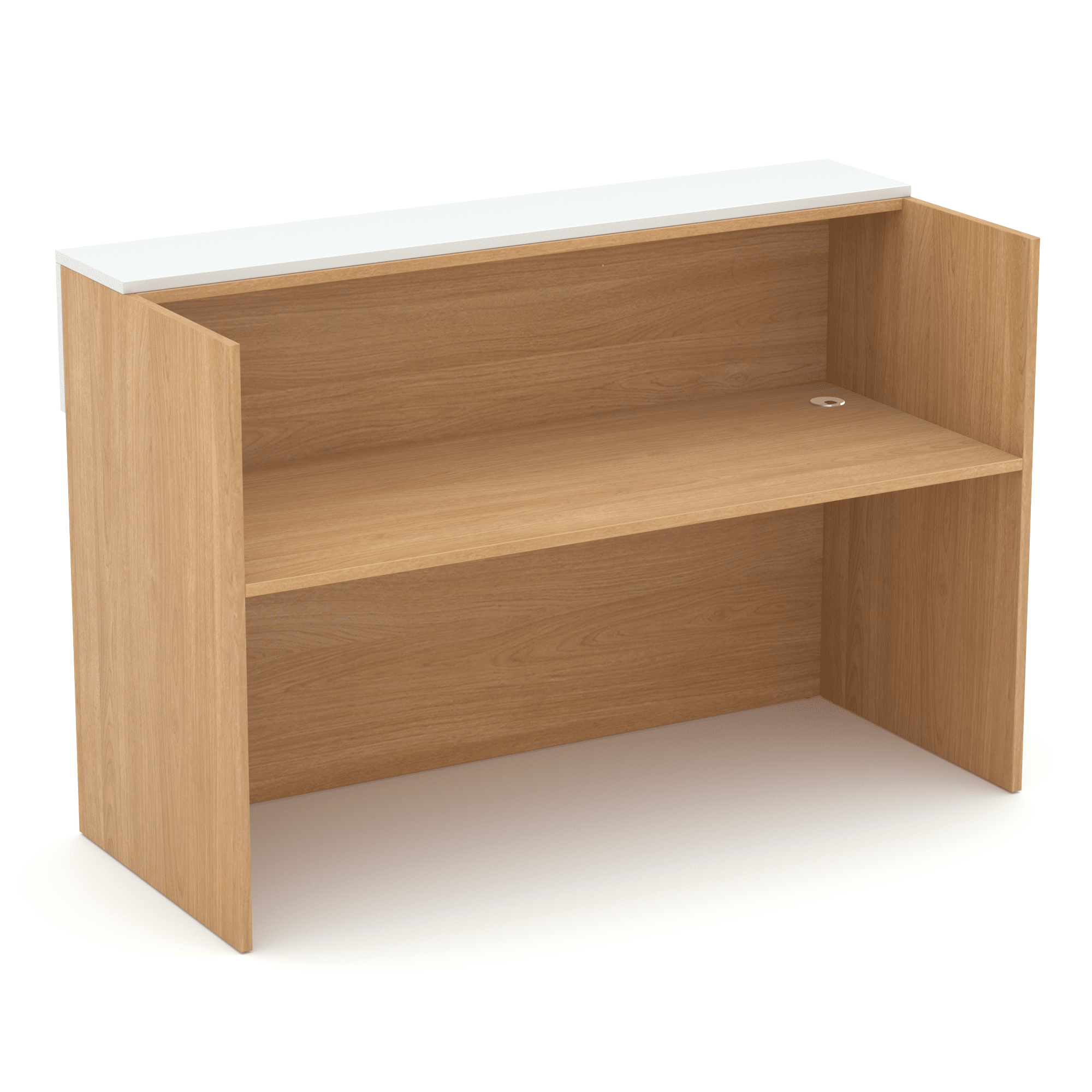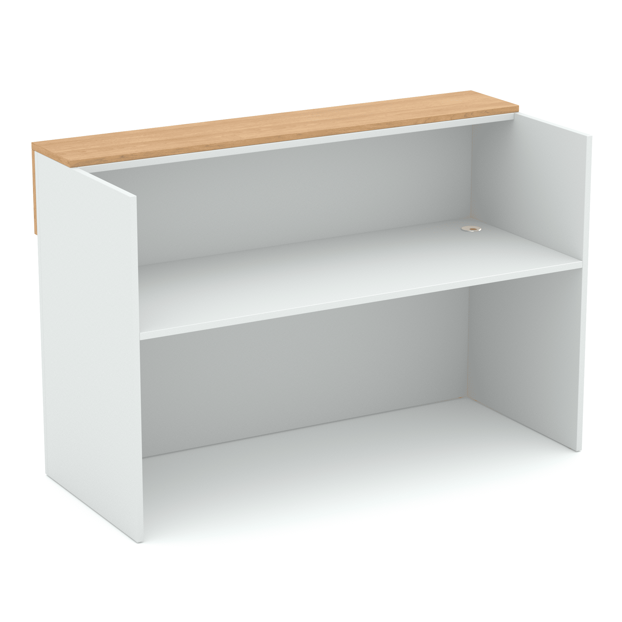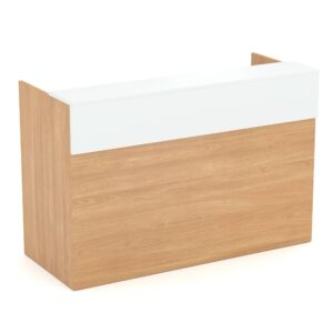 The waterfall feature on this reception is a perfect way to make this reception stand out. The feature goes over the top of the hob and front, drawing the eye upwards. Coming in oak or white, choose how you would like to accent this feature against the base. Modern and minimalist, this reception is sure to deliver professionalism and excellence to your reception area.