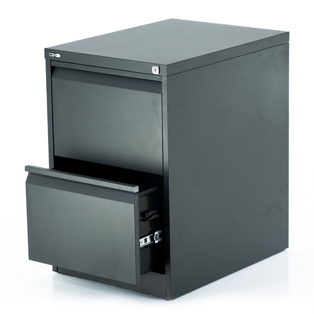 Even as we move away from paper based work towards a digital age, there is always a need for a filing cabinet in the office. Our Steel 2 Drawer Filing Cabinet is the best choice for a high quality, durable filing cabinet that will serve you for years to come. This fully steel cabinet is riveted for extra strength, and boasts a 10 year warranty for your peace of mind. Lock your drawers with the central locking mechanism to keep your files private and confidential. For safety purposes it is equipped with an anti-tilt mechanism, which is a feature that prevents multiple drawers from being open at one time. This reduces the risk of the cabinet tipping over from too much weight. Its drawers are on heavy dutyball bearing runners, which can not only support a weight of up to 45kgs per drawer, but also allow for an incredibly smooth glide. Lastly, these come fully assembled, so no need to try and put these together yourself. Available in 4 colour options, these are a great pick for file storage and are a must in any office.