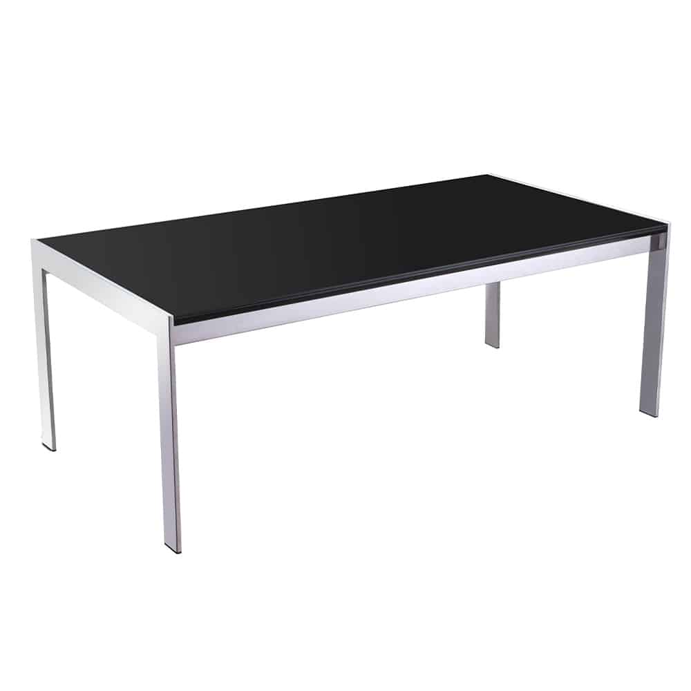 Dapper Glass Coffee Table: Black Tempered Glass Top with Chrome Recessed Frame