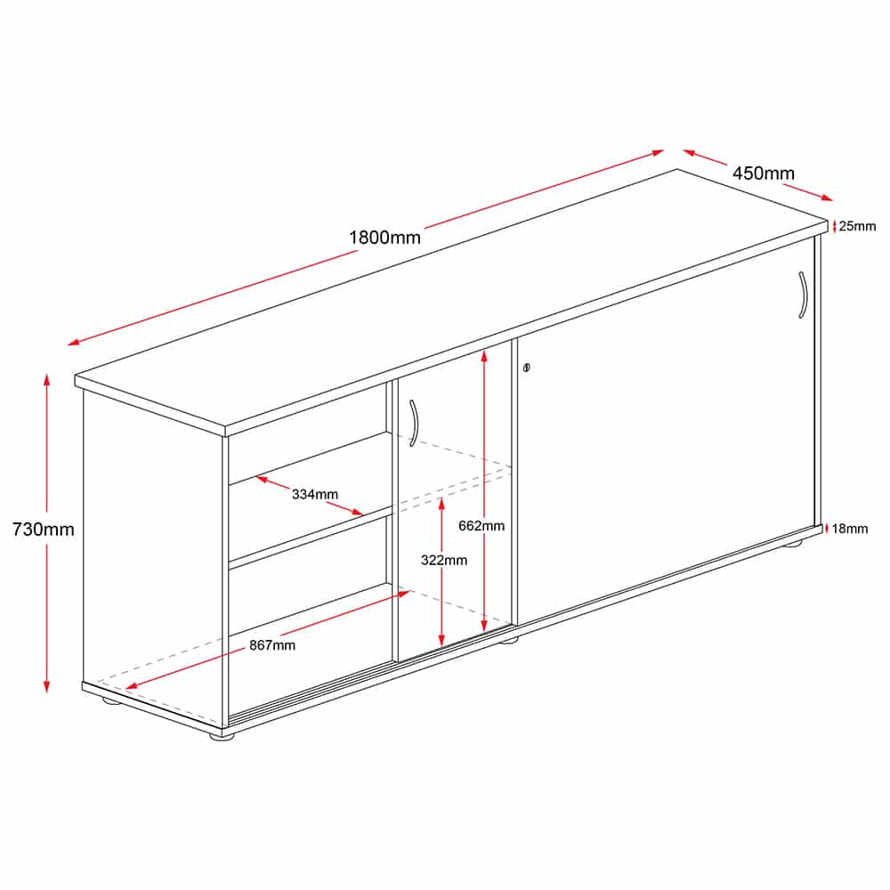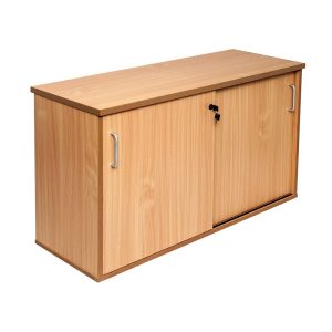 Organise your space with our Diamond Credenza, which has the practicality and durability to be a perfect addition to any space. Sliding doors on metal runners makes it a very tidy design, as the doors don’t swing out, making it great for small walking spaces. It comes with an adjustable internal shelf, and is key lockable for your peace of mind. Made from environmentally friendly E0 board, it is also highly durable. It has a choice of sizes, 1200W or 1800W, and comes in either white or beech. This matches in with our Diamond range, but works just as well on it’s own.