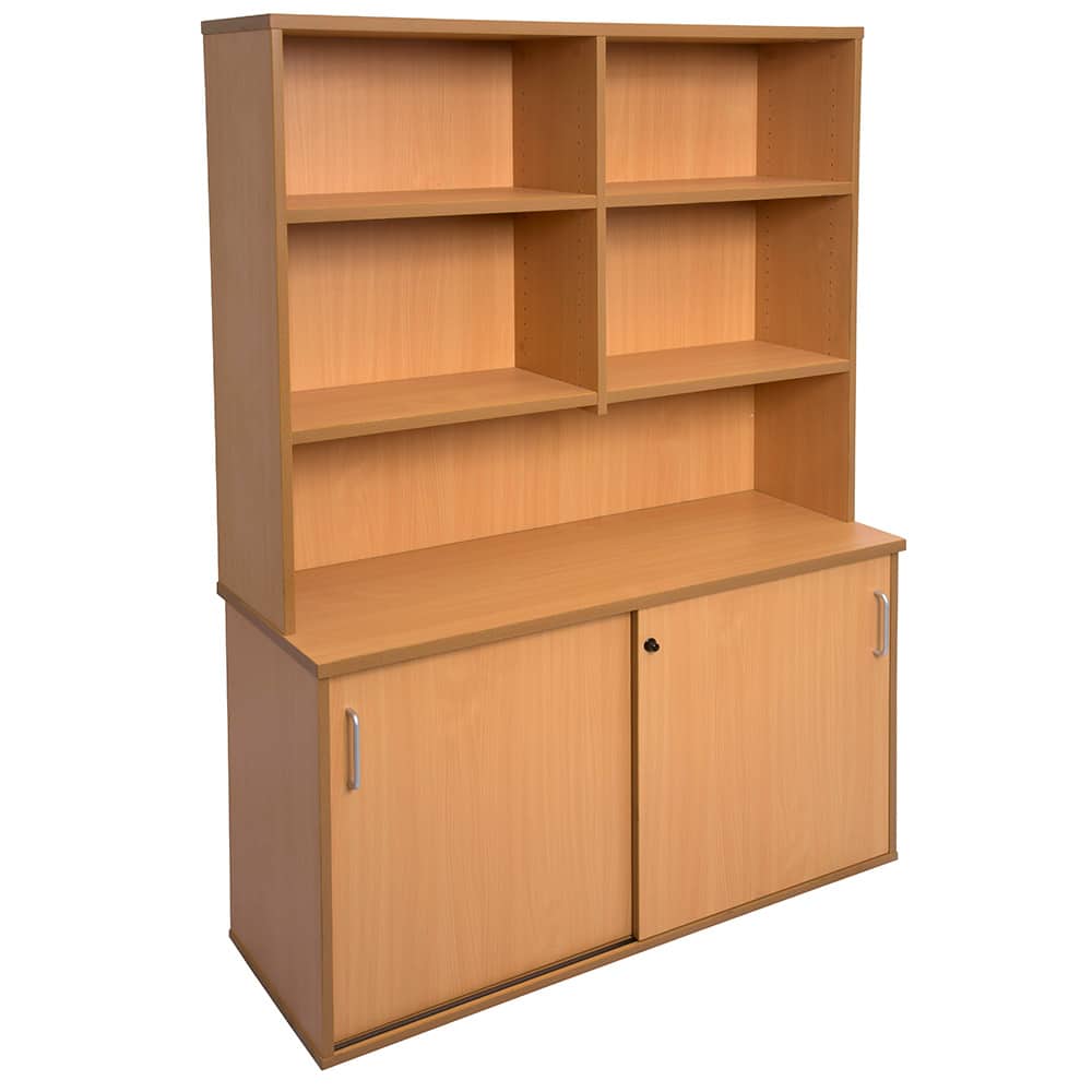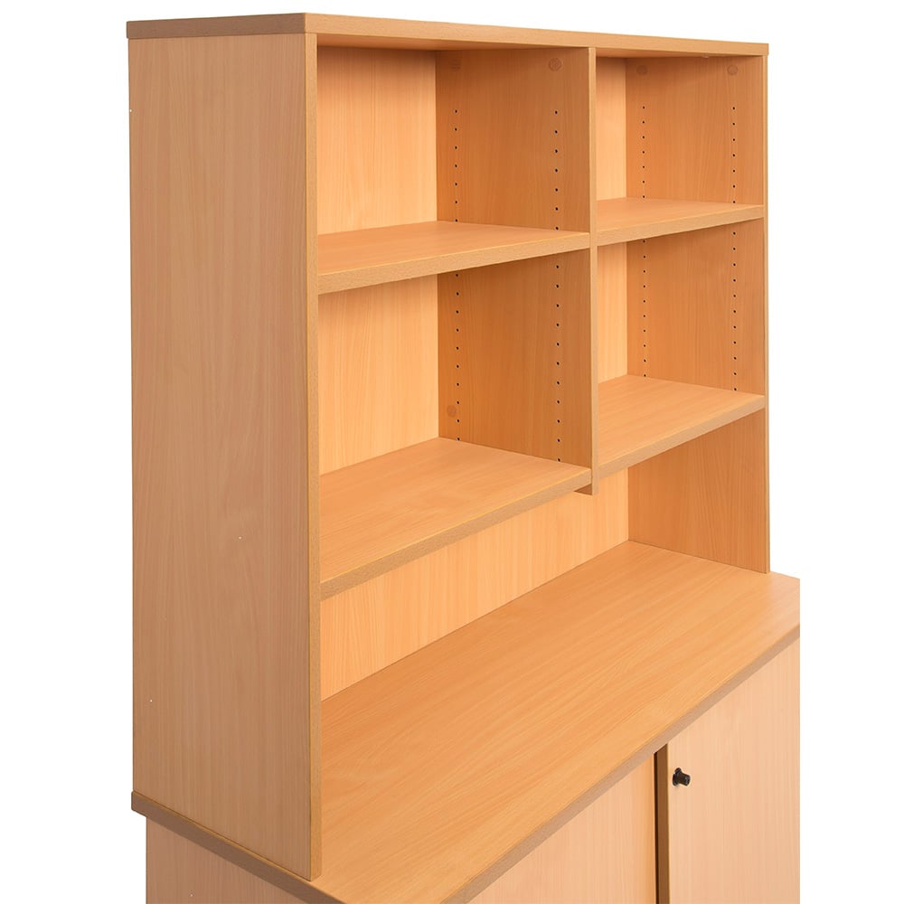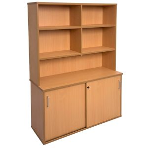 For a very versatile storage solution with plenty of space, try our Diamond Hutch & Credenza Combo. This combines the display shelves of the hutch with the internal storage capabilities of the credenza, giving you a world of possibilities to suit your storage needs. Made from durable E0 board, this hutch credenza is built to last, and comes in wither beech or white melamine. The credenza is key-lockable, with brushed silver handles on doors that run on metal runners. The hutch has 6 adjustable shelves, and the credenza has 1 adjustable internal shelf. With 2 sizes to choose from, make storage easy with the Diamond Hutch & Credenza combo.