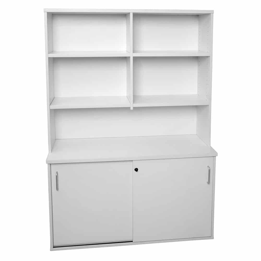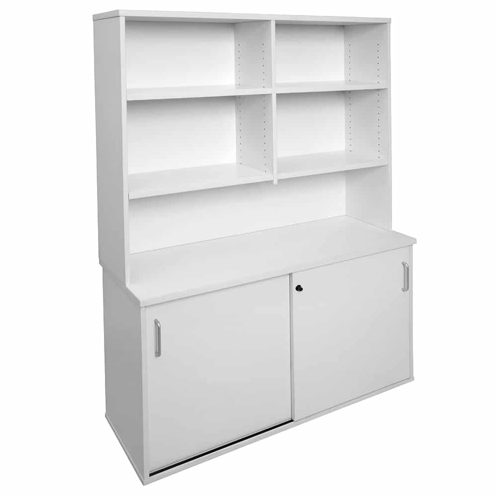 Diamond Hutch & Credenza Combo: Key-Lockable Storage with Adjustable Shelves