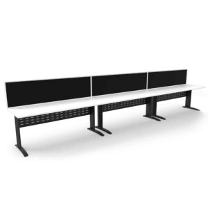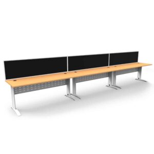 Diamond Space 3 Person Single Sided Desk: Pinnable Acoustic Screen and Dual Cable Management Features