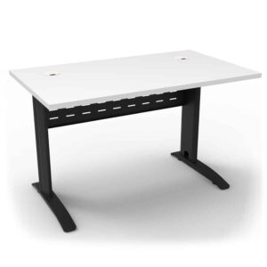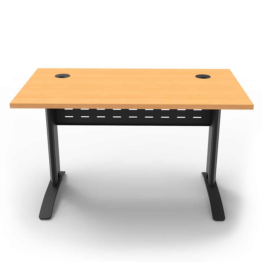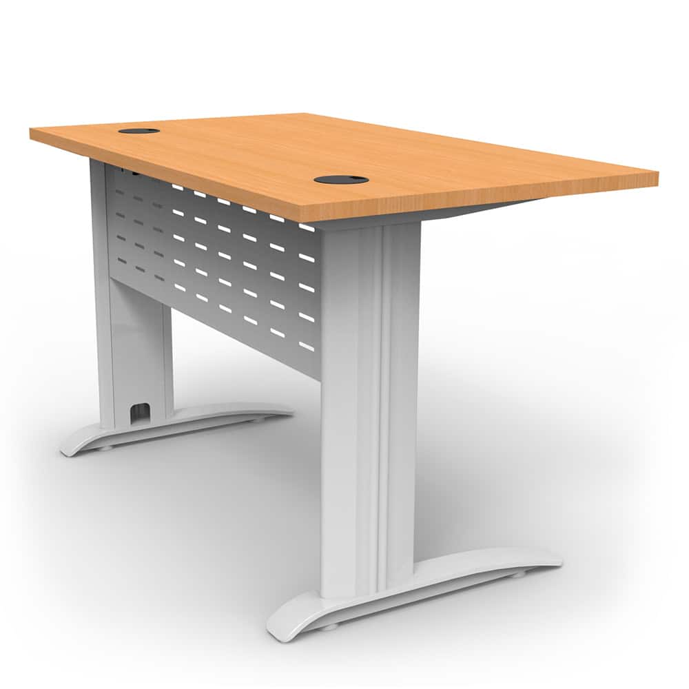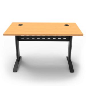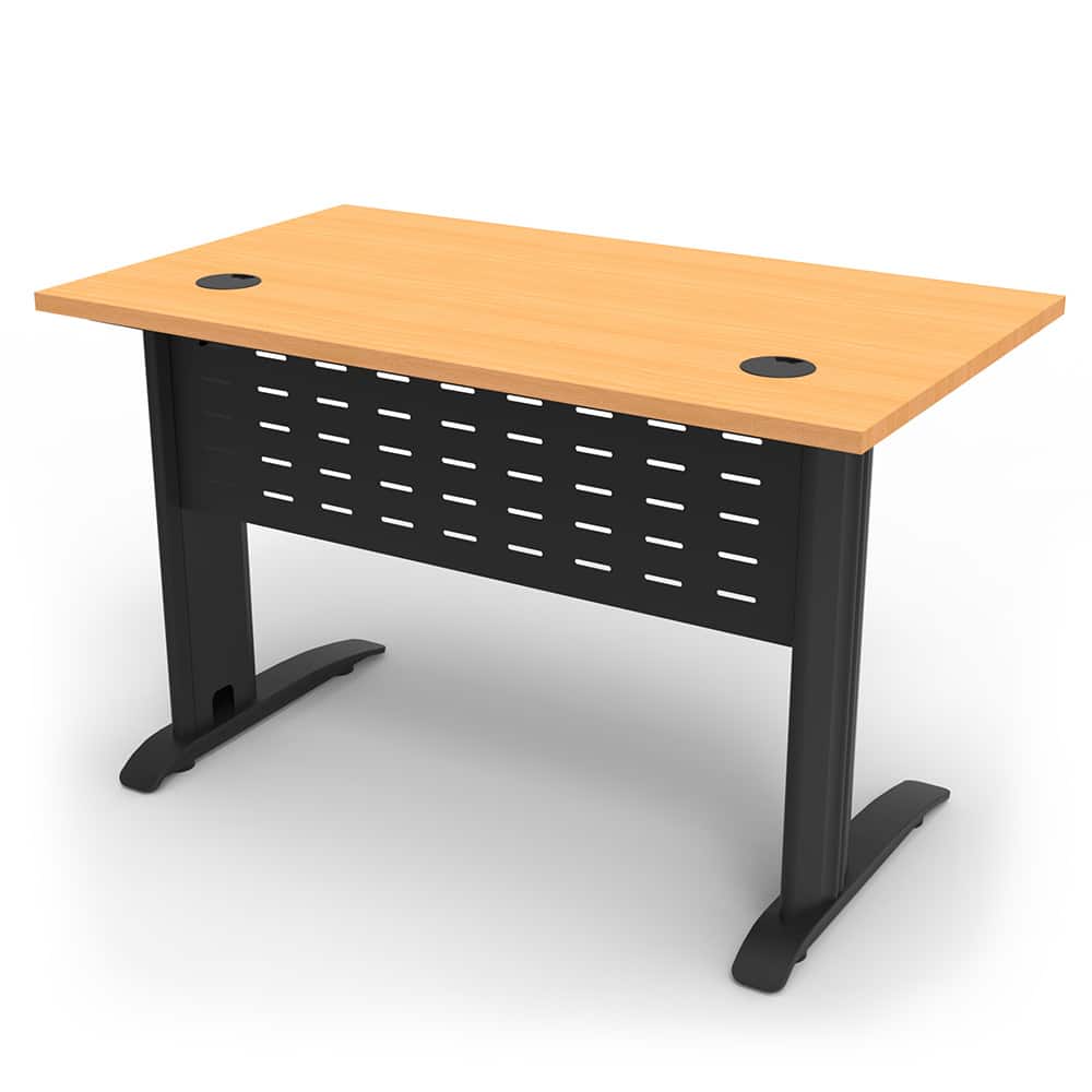 The Diamond Space Office Desks are made from durable E0 board, with dual cable hole cut-outs to help with cable management. Powdercoated metal makes up the frame, with 3 colours to choose from. It also comes with a perforated modesty panel and adjustable levelling feet to keep the top level on any floor. Check out our Diamond Deluxe to see a slightly bigger version with a scalloped edge instead of cable holes.
