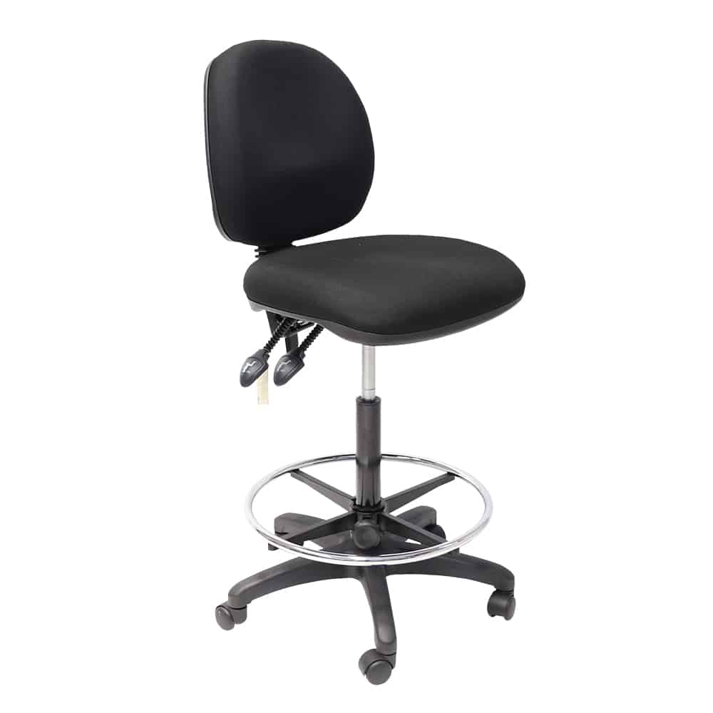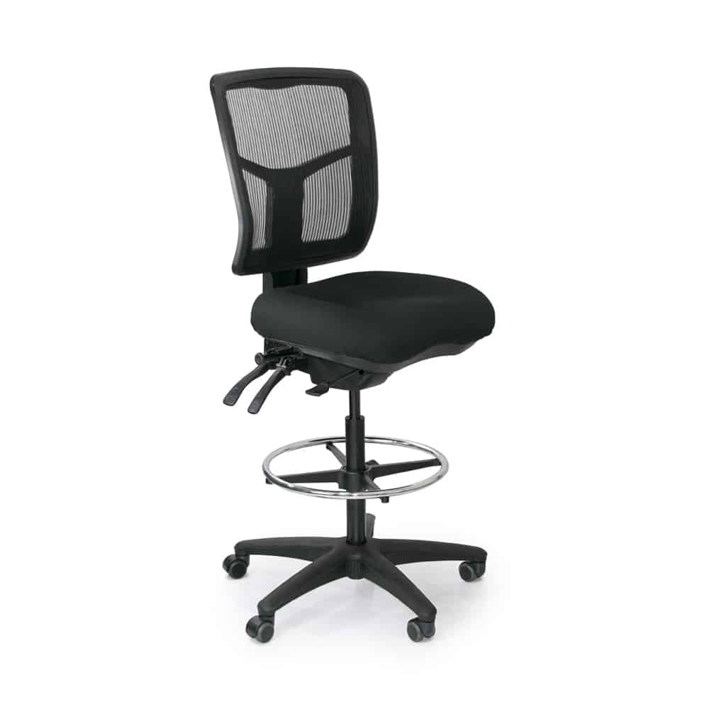 Many of our office chairs can be heightened with a drafting kit, which allows the seat height to be raised much higher than a normal office chair. These are most commonly used for bar-height tables, or sometimes for sit-stand desks. The exact height range that can be achieved by adding a drafting kit varies from chair to chair, as there are different kits that go with different chairs. The difference in height of the star base of the chair will also impact the height range.