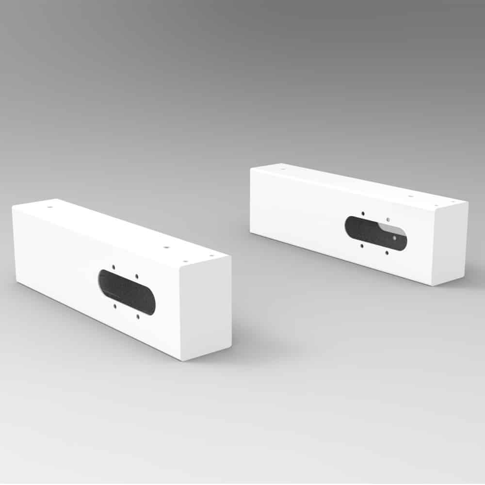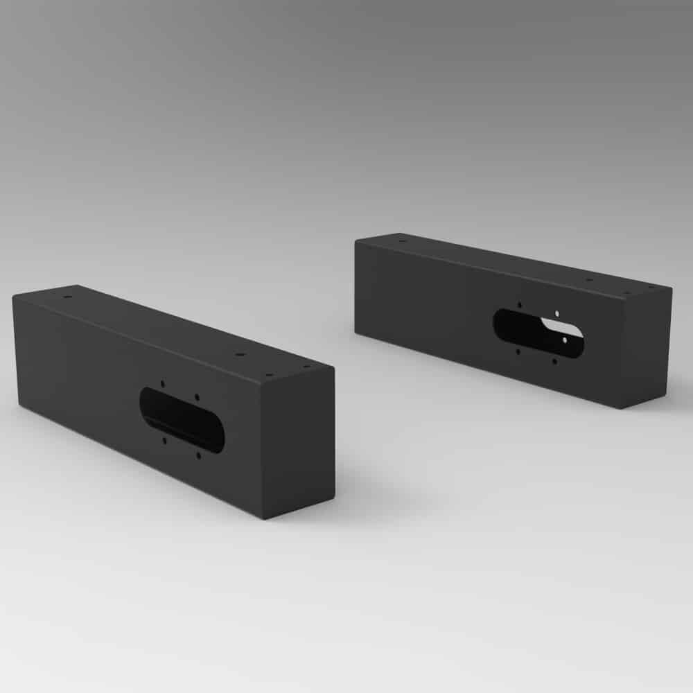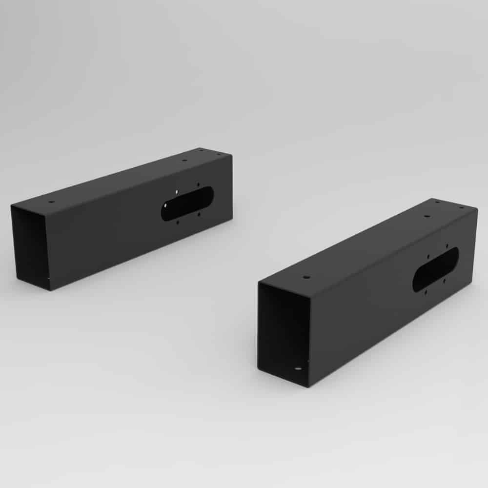 This product is only for use with our Drive or Radial desks with Cable Trays, and will not work for other products. These are what are used to mount the cable tray to the desk frame. They have infeed and outfeed holes for cable management, allowing for daisy chaining between desks.
