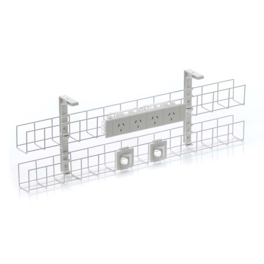 Cable and power management can easily become a nightmare, but it doesn’t have to be with Danny’s Dual Tier Cable Basket Kits! These kits contain everything you need to help organise your cables and run power to your desk with ease. Each kit comes with dual tier cable basket, a GPO strip, 2 data tiles and a cable to power the GPOs. Access everything you need from these baskets, which screw into the underside of the desk and provide plenty of space to run cables through. Extra length isn’t a problem, as these can be easily cut down to make them smaller if need be.