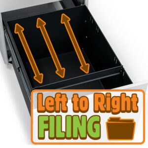 - Takes files left to right, allows for easy viewing of labels from seating position