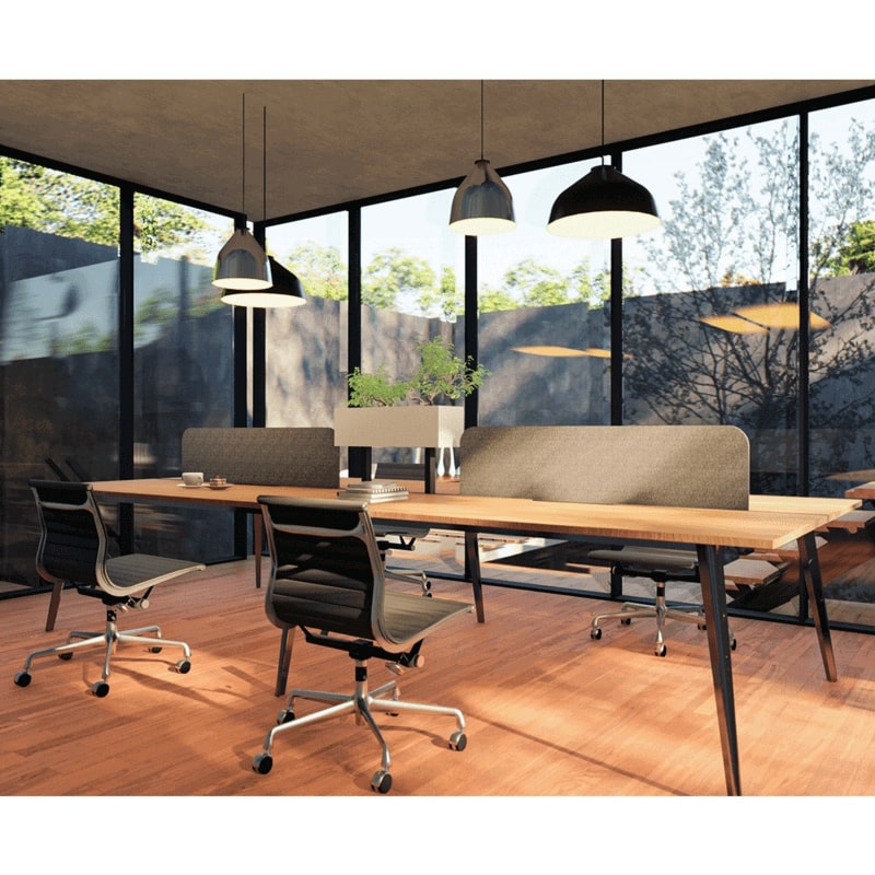 Danny’s Enzo Range is the latest offering of our modern and stylish desking solutions. For standalone desking, or systems to suit a bigger office space, the Enzo range has options to fit your needs in your next fitout. The legs are available in black steel as well as a solid timber, providing our best in stylish simplicity. The tops are 25mm commercial grade MDF available in oak and white. Enzo can also be combined with our Zorba screen system, combining privacy and functionality while maintaining a light, minimalist feel. For extra style you can also add planter boxes to add that modern touch while keeping a natural feel.