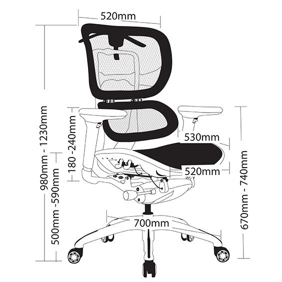 - Total chair height range: 980-1230