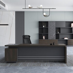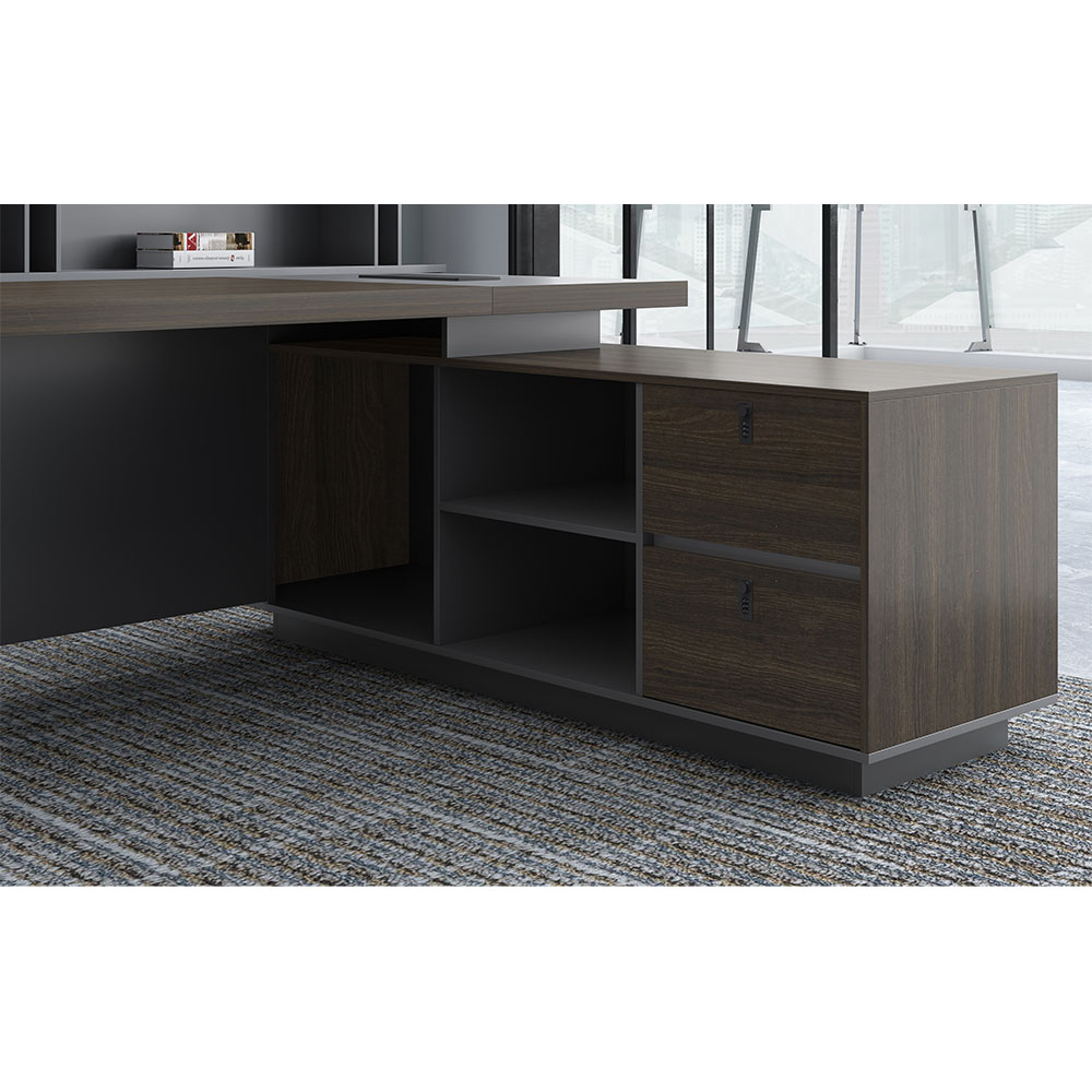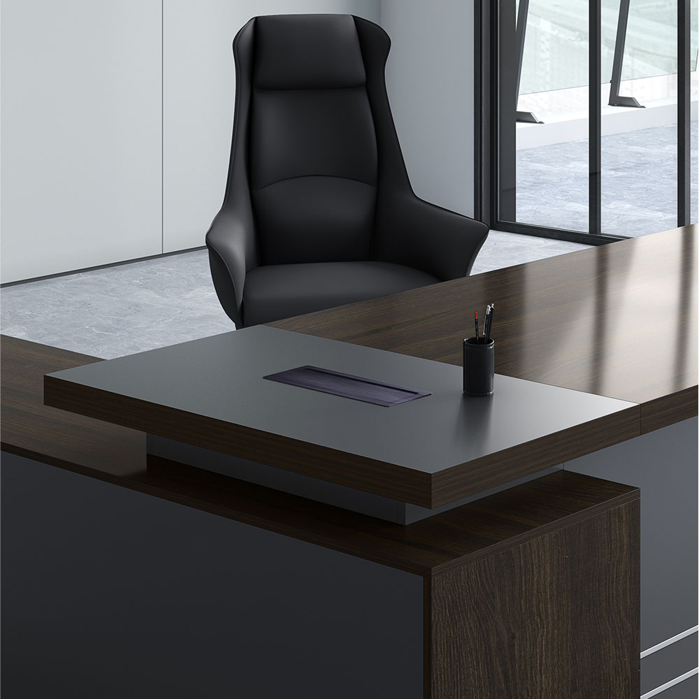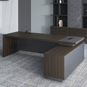 The Hamilton Executive Office Desk is without a doubt Danny’s best offering of Premium quality office furniture. Dark, brooding and exuding modern professionalism, the Hamilton is made for someone looking for a gorgeous, amazingly built and designed desk. Its dark oak and charcoal finish makes it understated and not too flashy, while still taking command of the room. Adding to the luxury of this desk is its construction, made from 50mm thick melamine, the highest quality on offer. When you sit at this desk, everyone knows who you are.