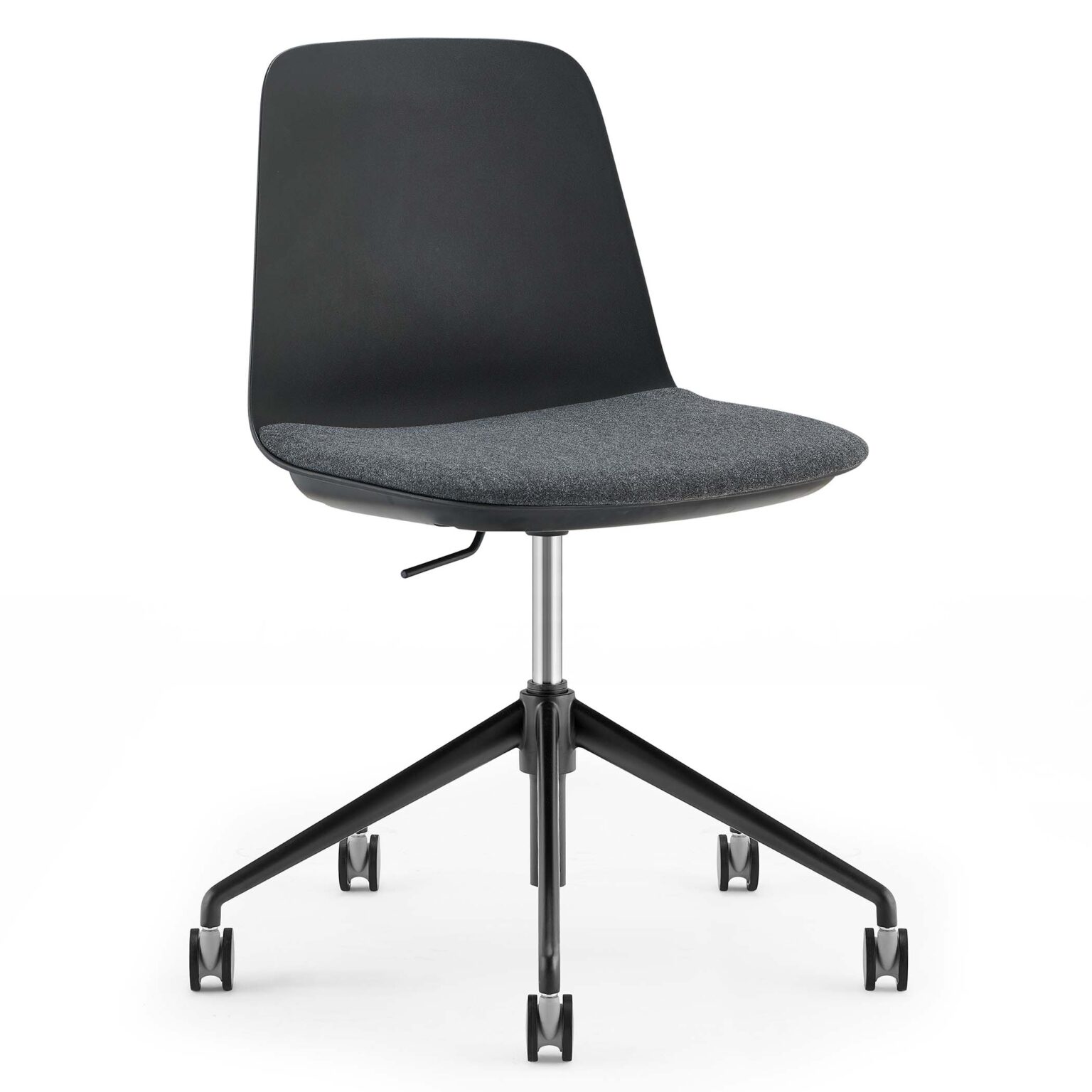 Colourful, contemporary and practical, the Layla Task Chair is ideal for boardrooms and meeting rooms. It has a gas lift atop a sturdy black 5 star base, giving it the range of motion required for boardroom chairs. Instead of being fully upholstered, this variant instead has a seat pad and a plastic back. This makes it both flexible and cushy, with the added benefit of a pop of colour added to the seat.