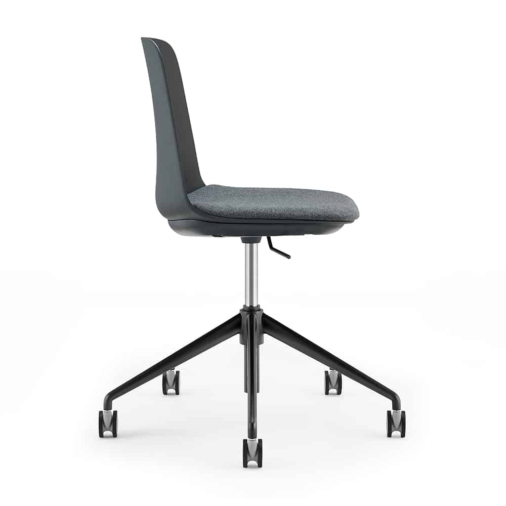 Colourful, contemporary and practical, the Layla Task Chair is ideal for boardrooms and meeting rooms. It has a gas lift atop a sturdy black 5 star base, giving it the range of motion required for boardroom chairs. Instead of being fully upholstered, this variant instead has a seat pad and a plastic back. This makes it both flexible and cushy, with the added benefit of a pop of colour added to the seat.