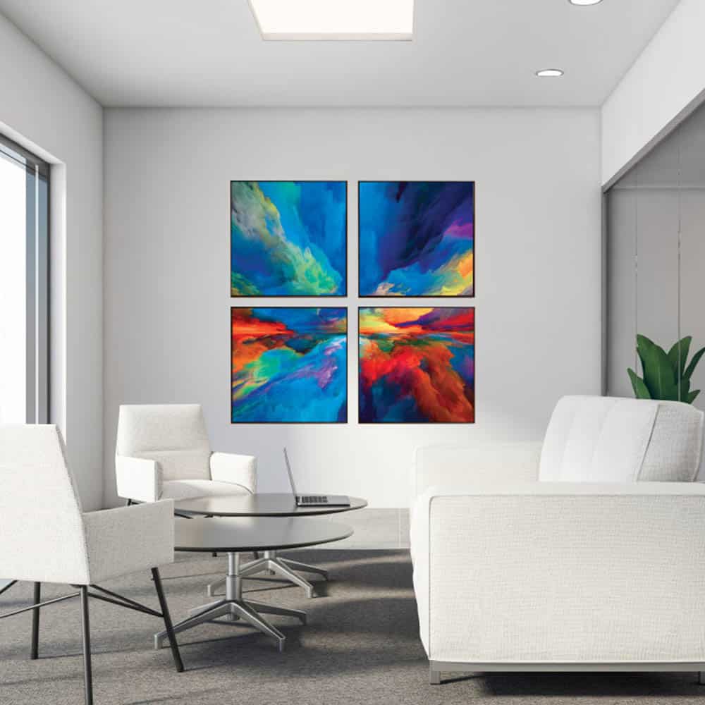 Many of our acoustic solutions offer some visual appeal, but none do it like our Mana Acoustic Art. These are high quality printed acoustic panels, which dampen sound and look great while doing it. Each piece is handcrafted here in Australia, from 24mm thick Mana panelling and an MDF ‘sound Backing for added sound absorption. Choose from a range of different designs, printed to a high resolution to ensure the best look for your space. Along with it’s thin frame, which comes in 4 powder coated colour options, these artworks are sure to pop and draw attention the second guests enter the space.