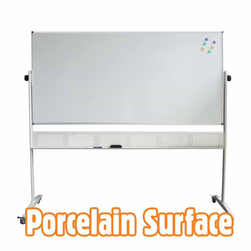 - Danny’s Mobile Porcelain Whiteboard offers a porcelain with a galvanized steel lining and a low density fiberboard core, an excellent writing surface with a vitreous enamel whiteboard.