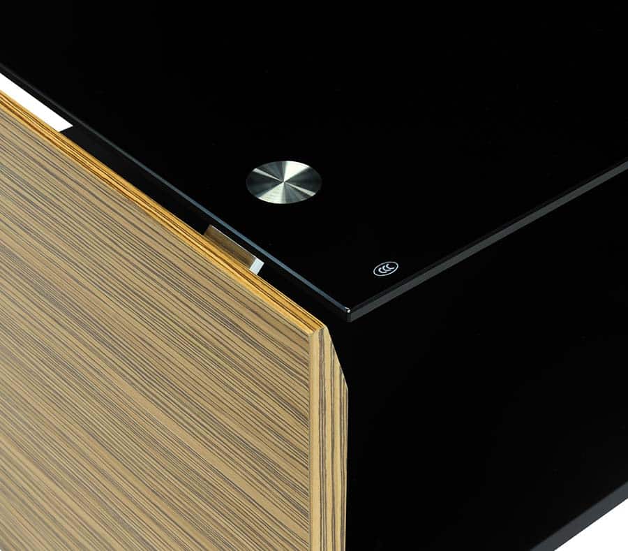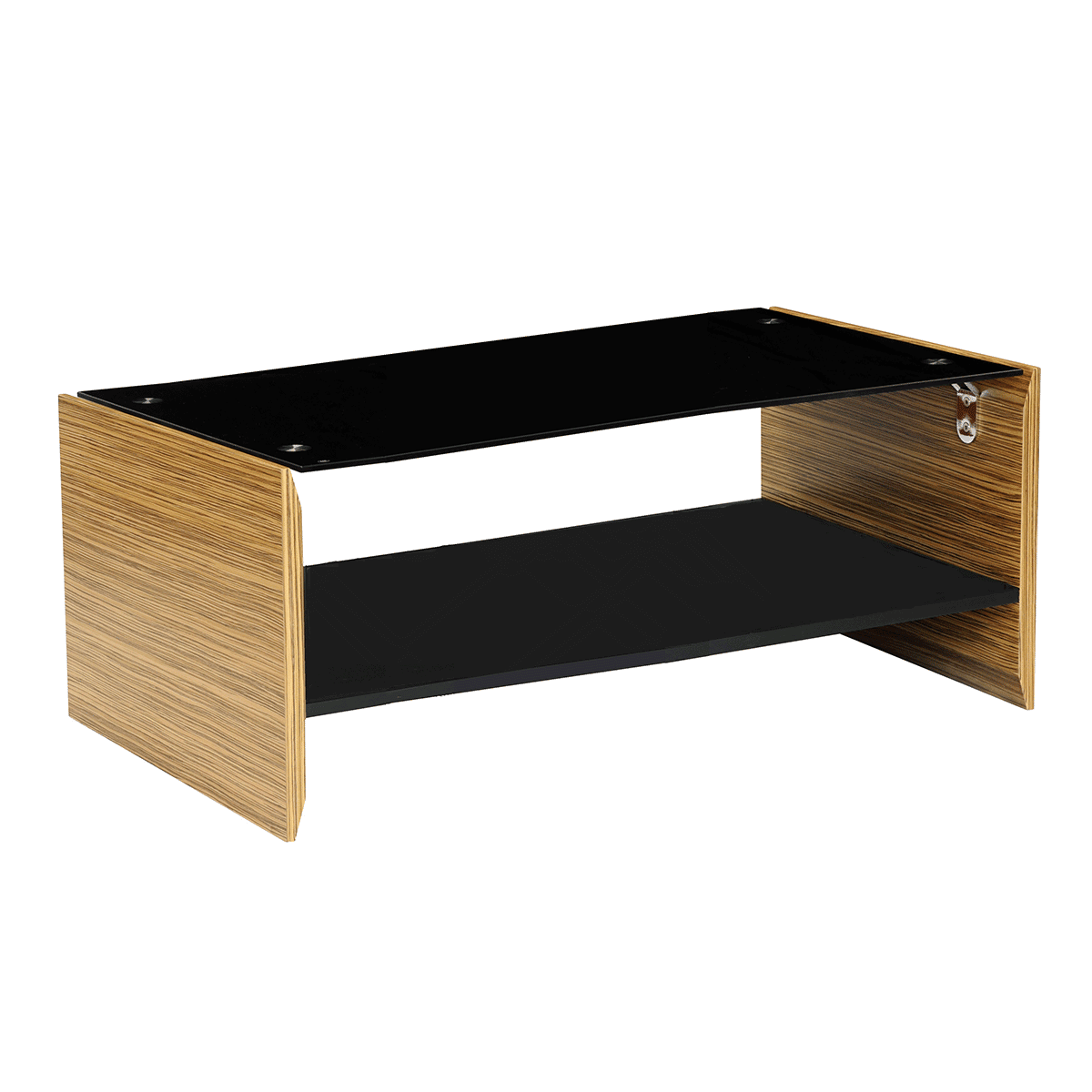 The Nova Coffee table is a perfect addition to the Nova range. Made from Zebrano timber veneer and black glass, this table is sleek and classy. It has a shelf underneath the top to give you some storage space where your items can be displayed and easily accessible. The side panels are beveled on the edges where they meet the top and floor, enhancing that sharp look that the Nova range strives for. For an office lounge area or at home, this coffee table will give you function and style.
