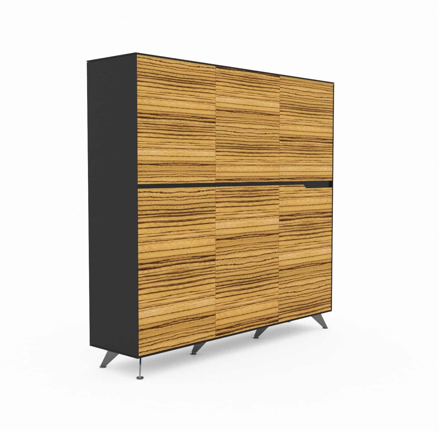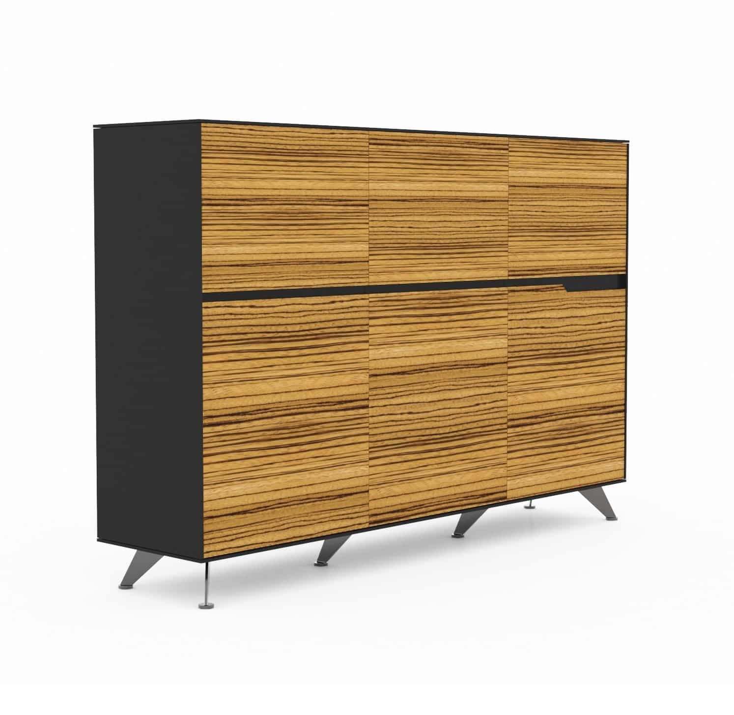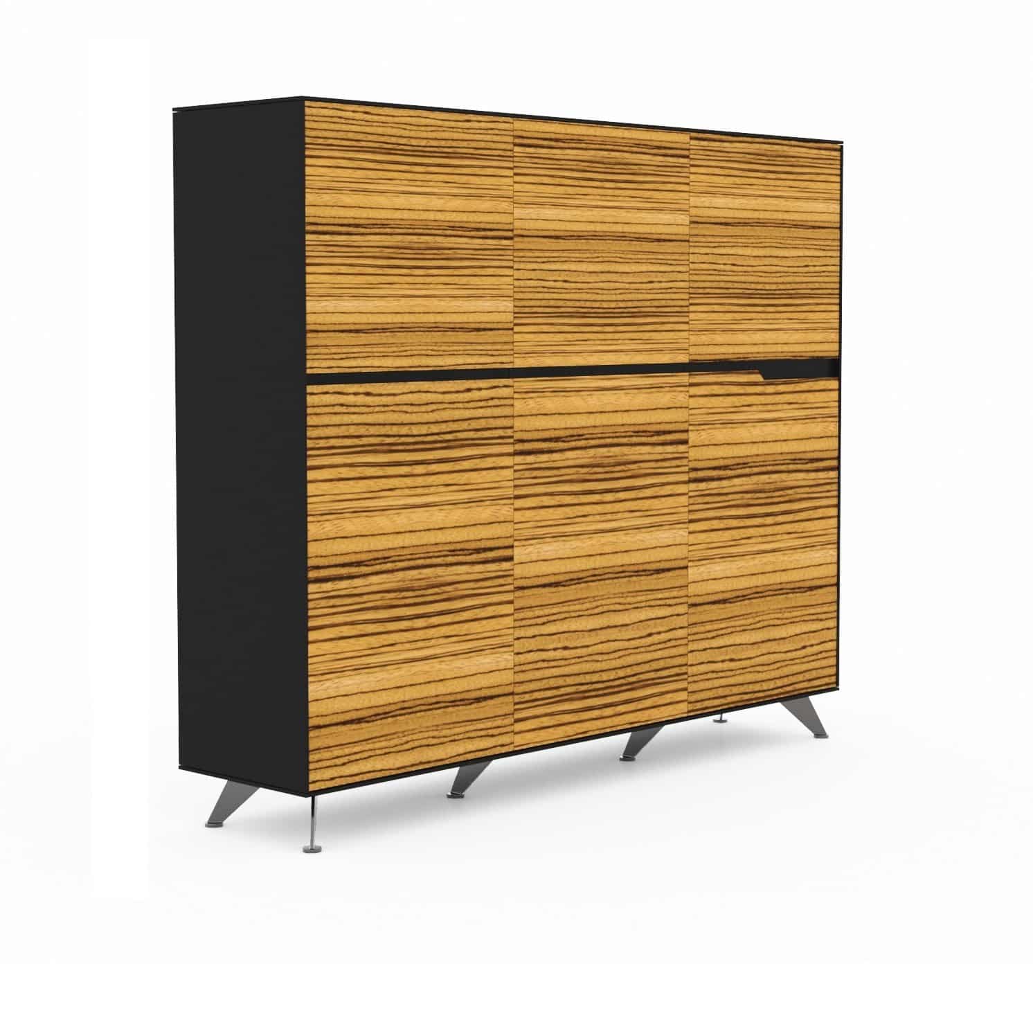 Nova Six Door Cabinet: Modern Design with Functional Storage and Striking Zebrano Veneer