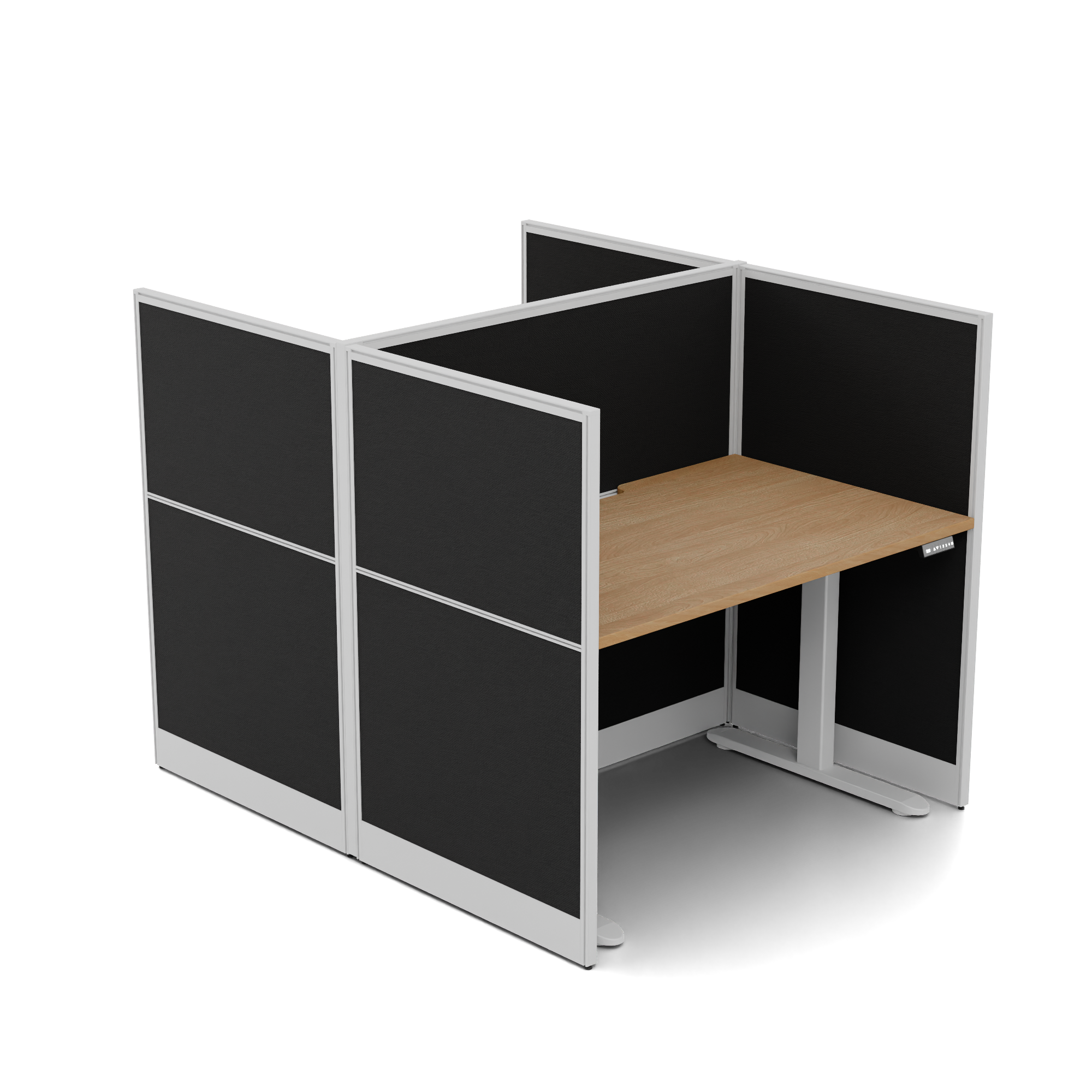 Quiet Height Adjustable 2 Person Double Desk + End Screens