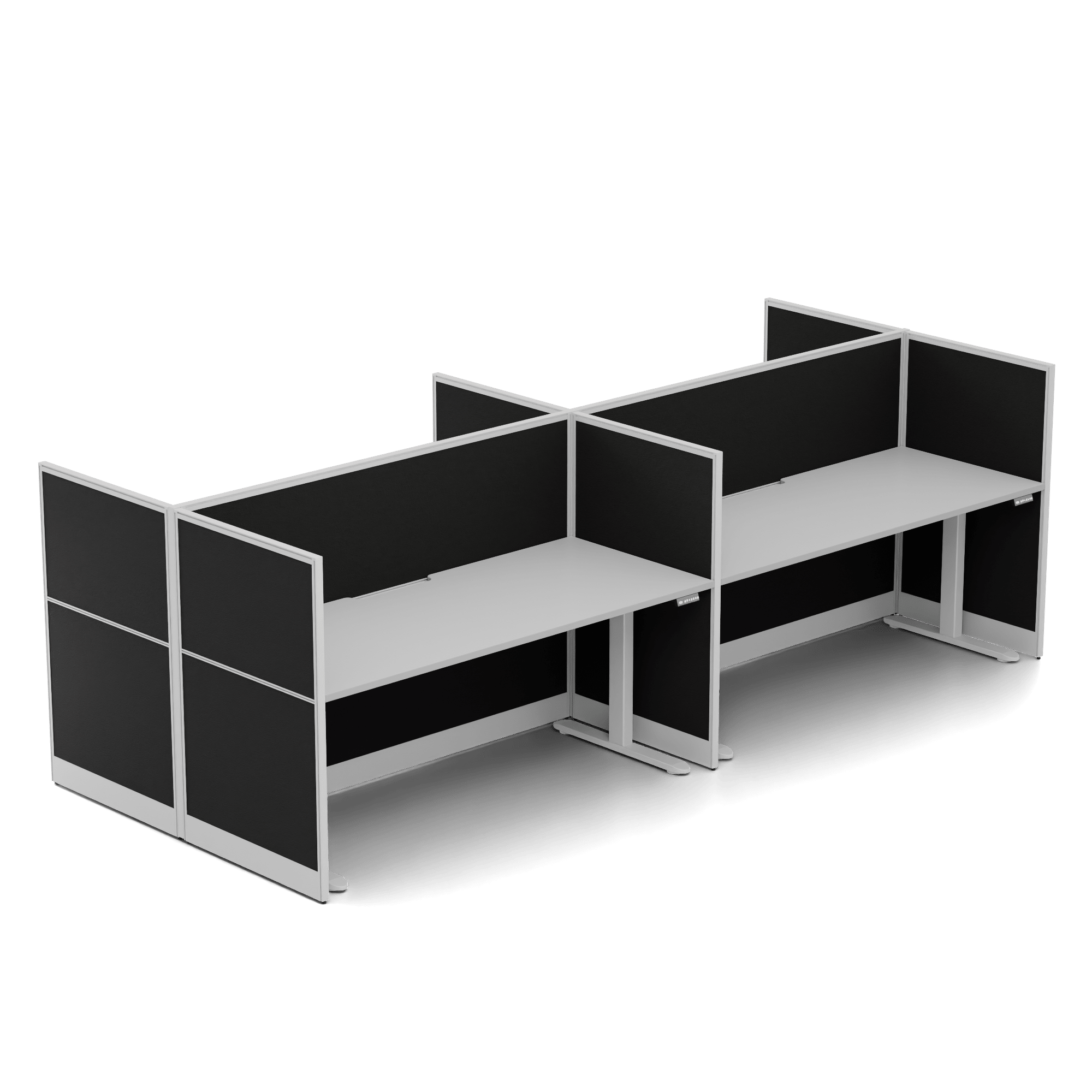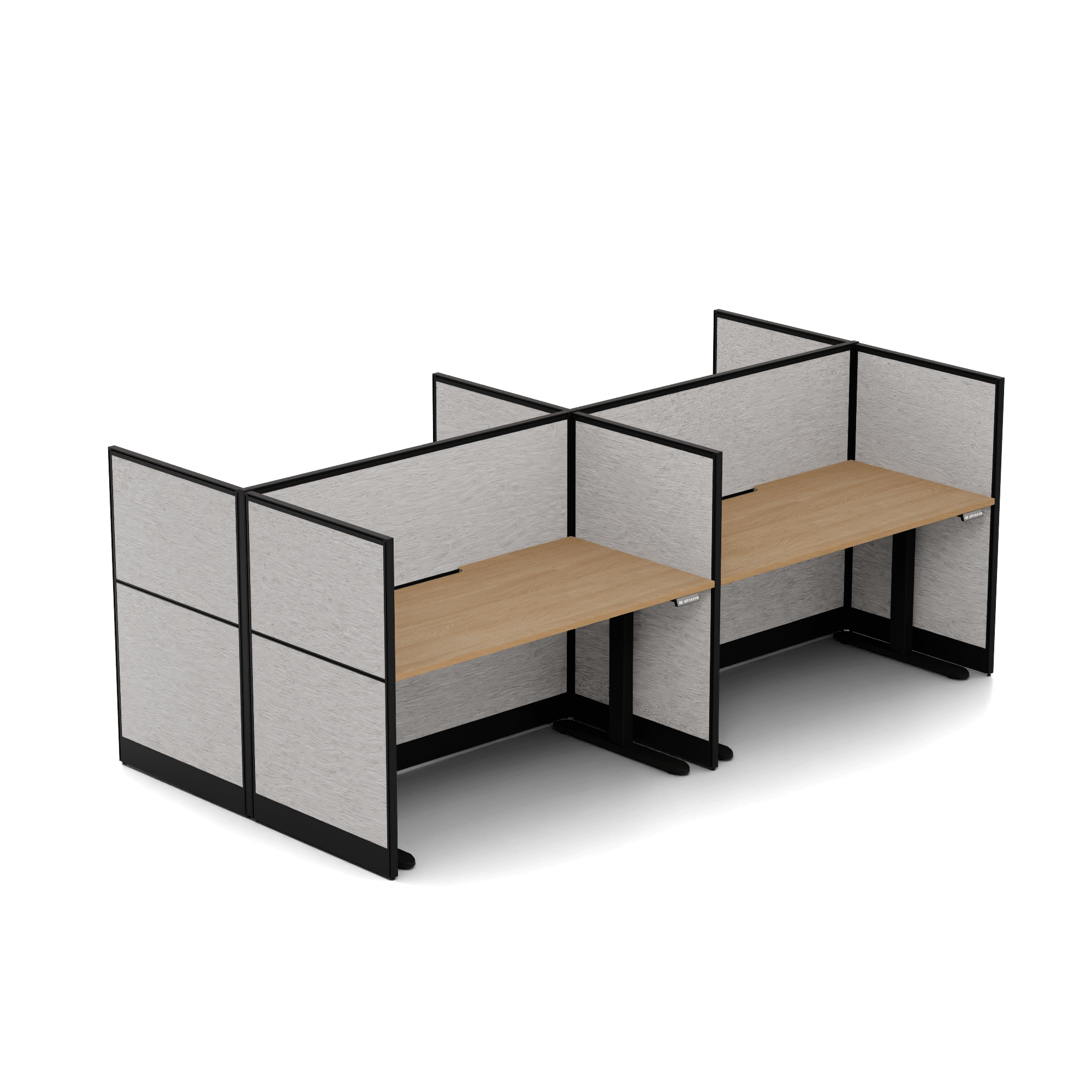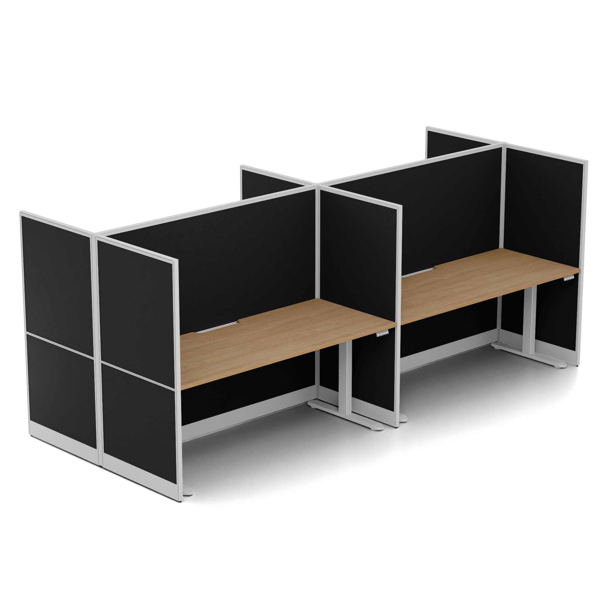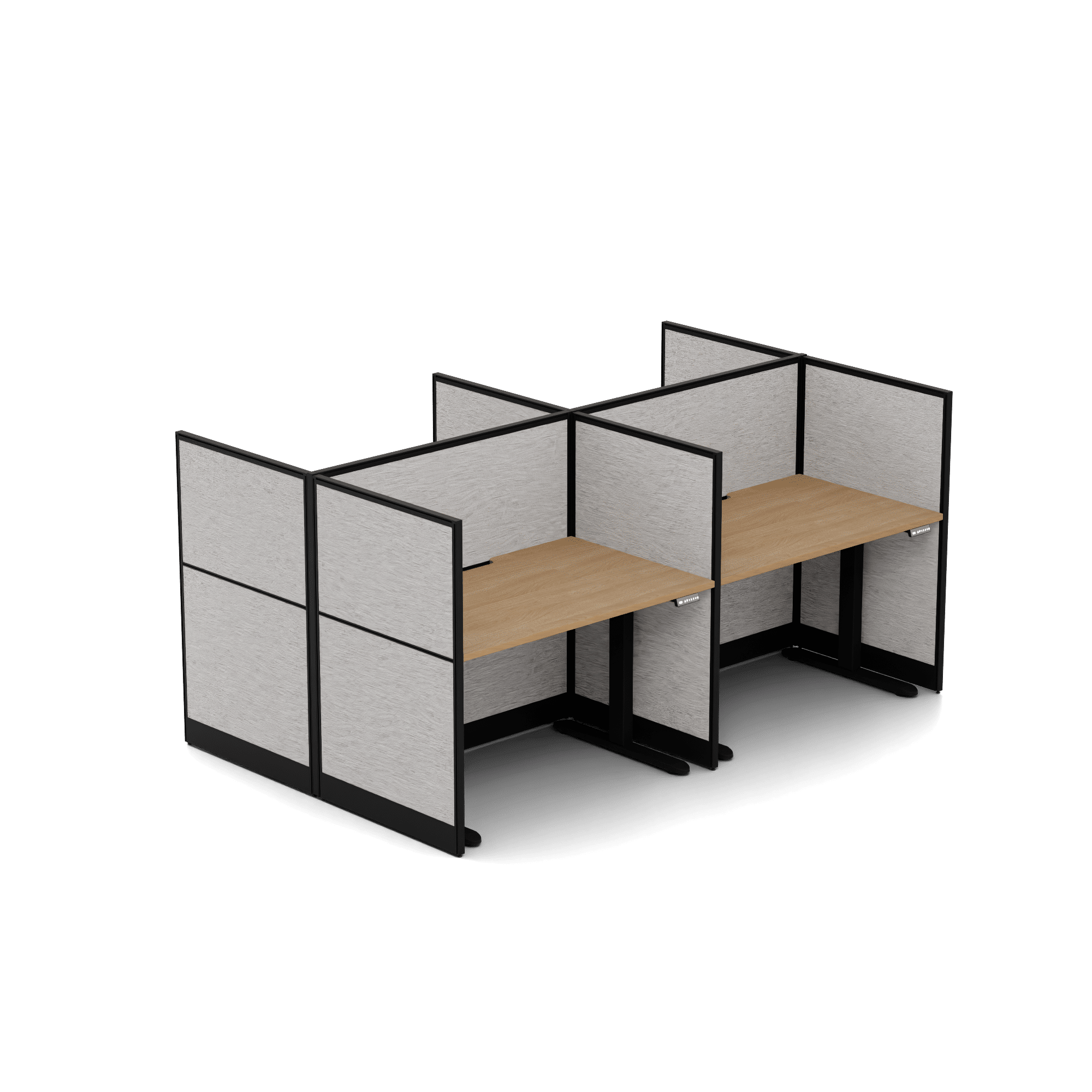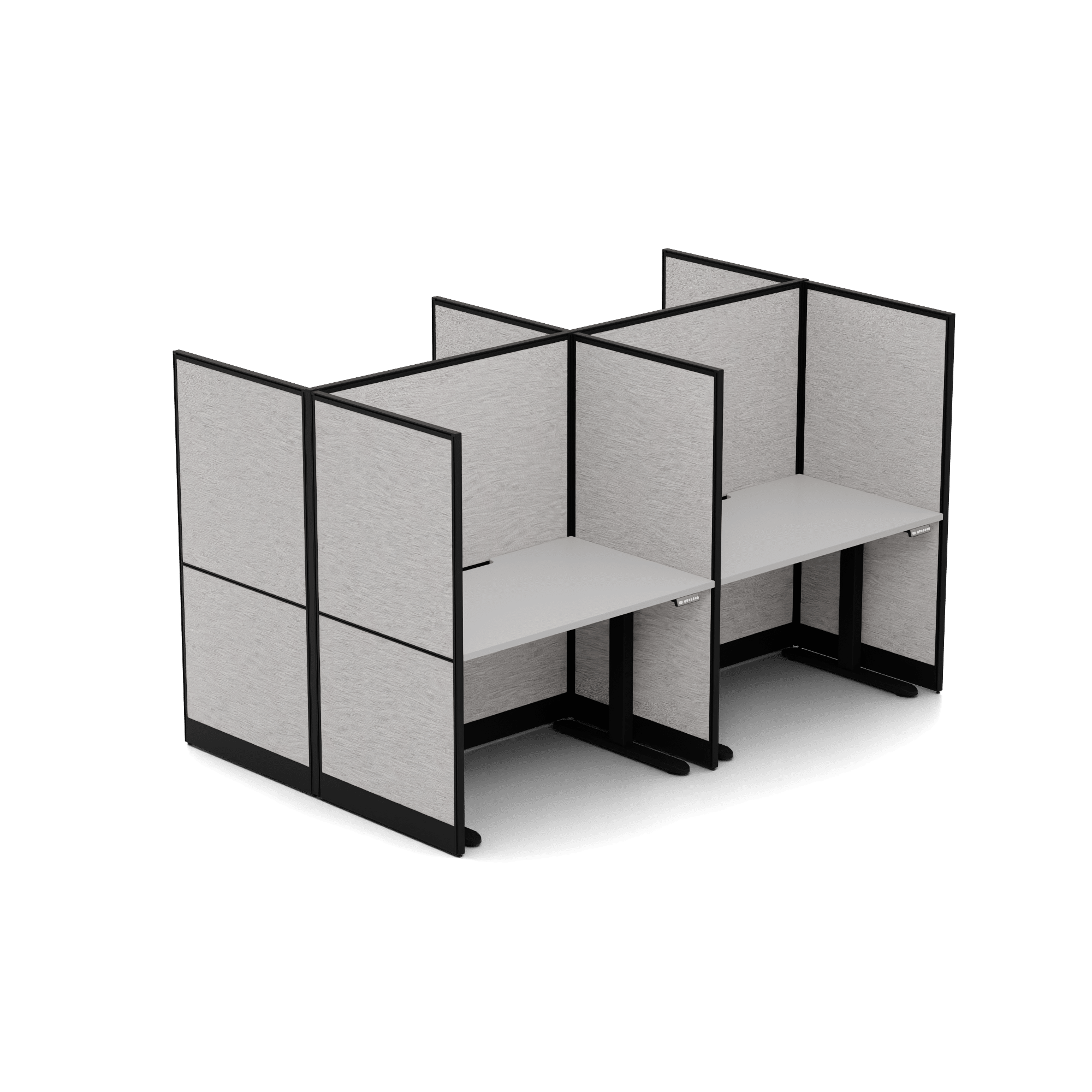 Quiet Height Adjustable 4 Person Double Desk + End Screens