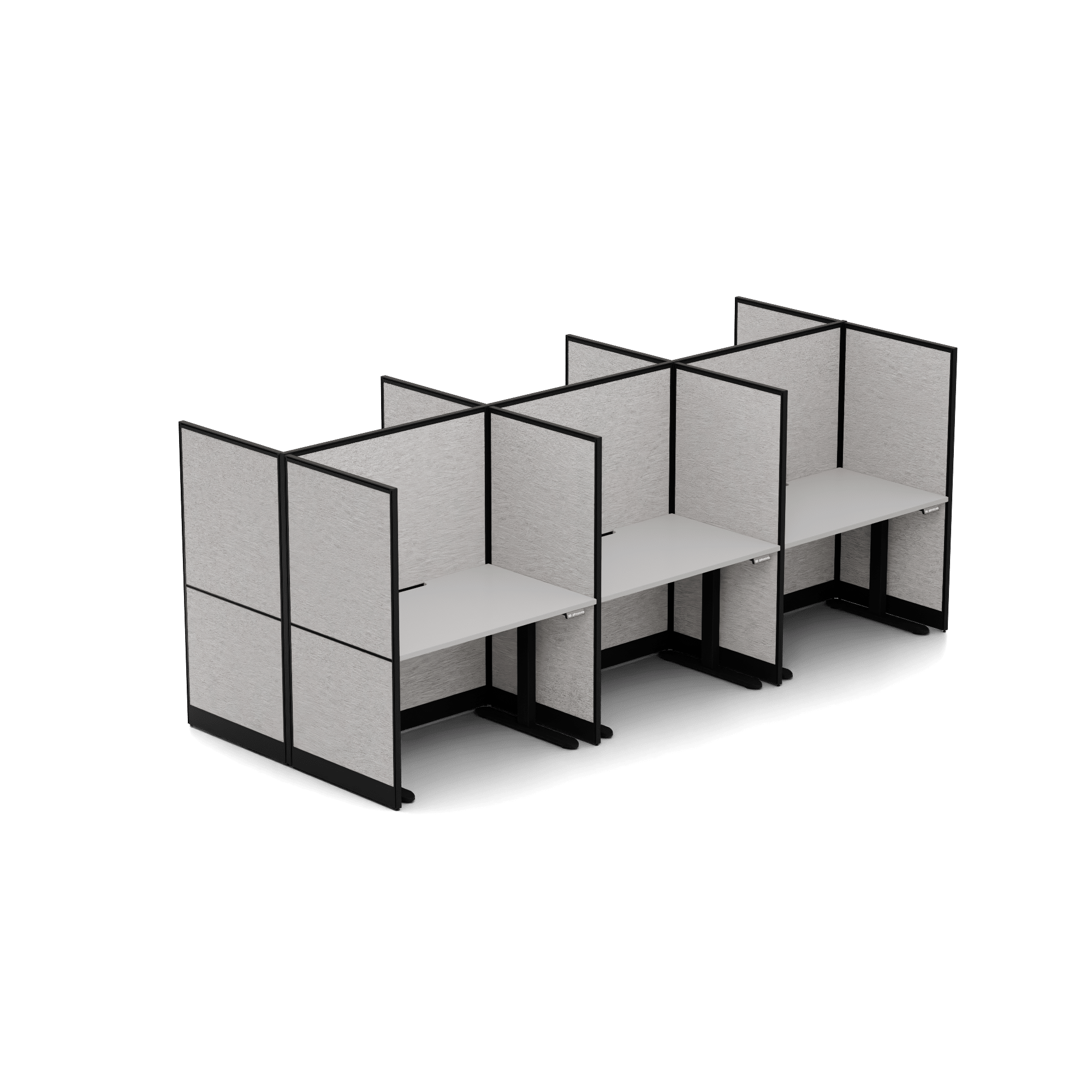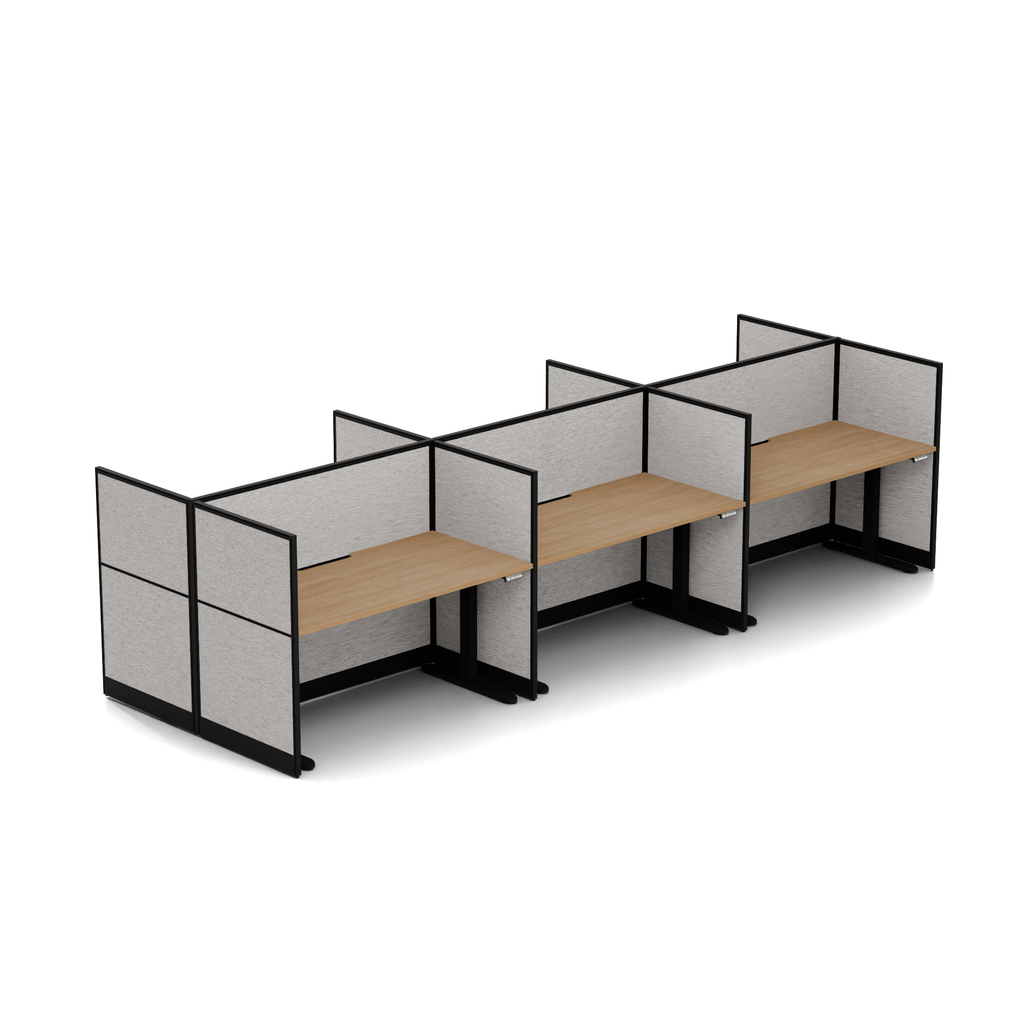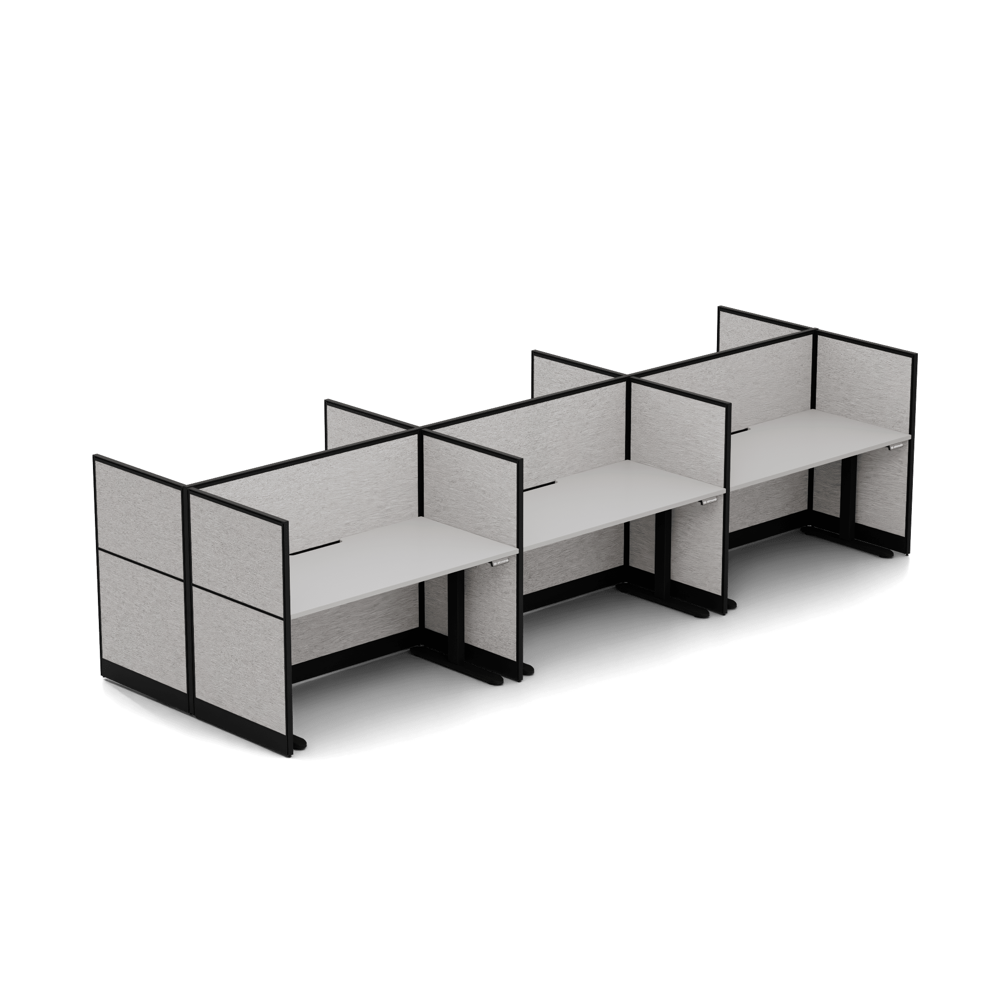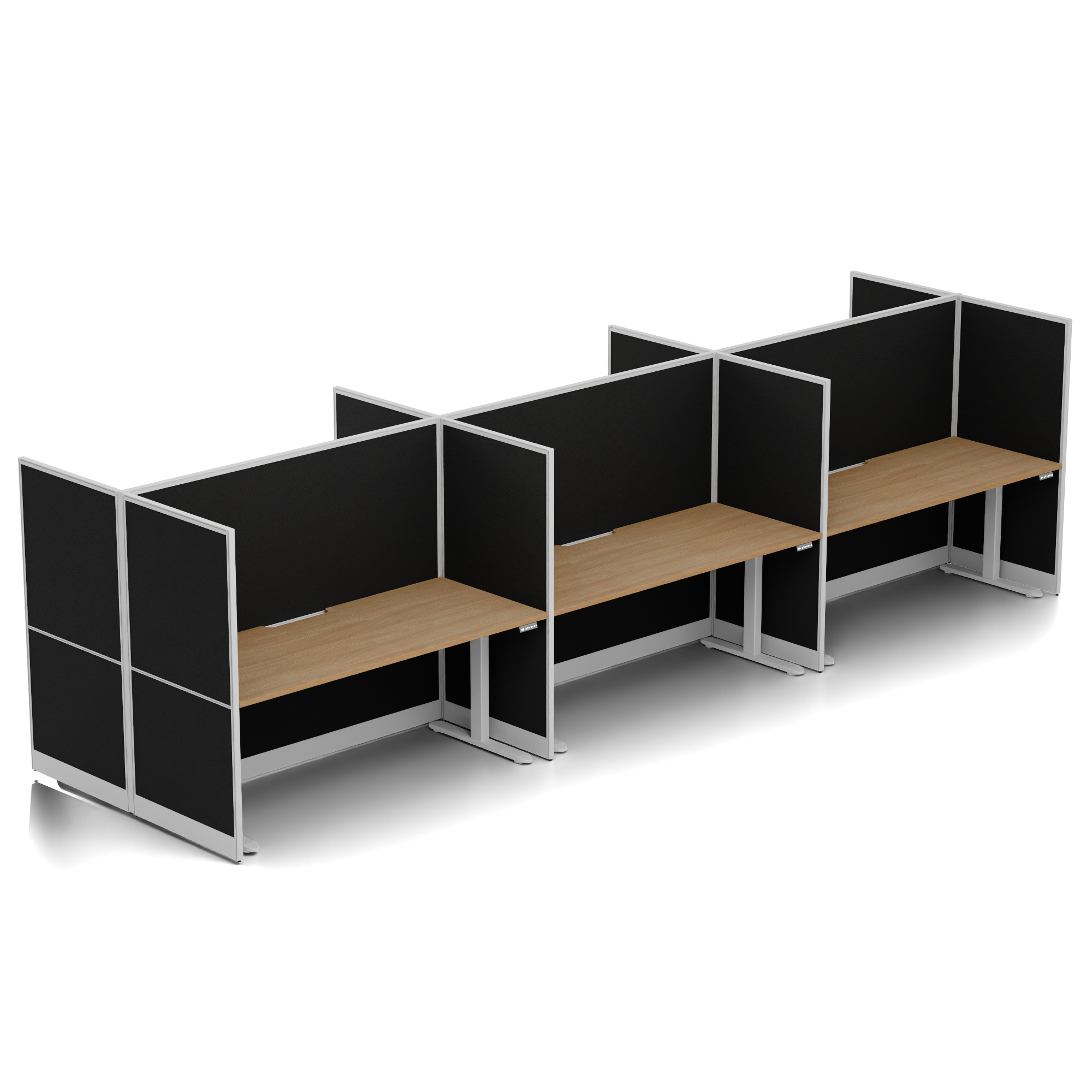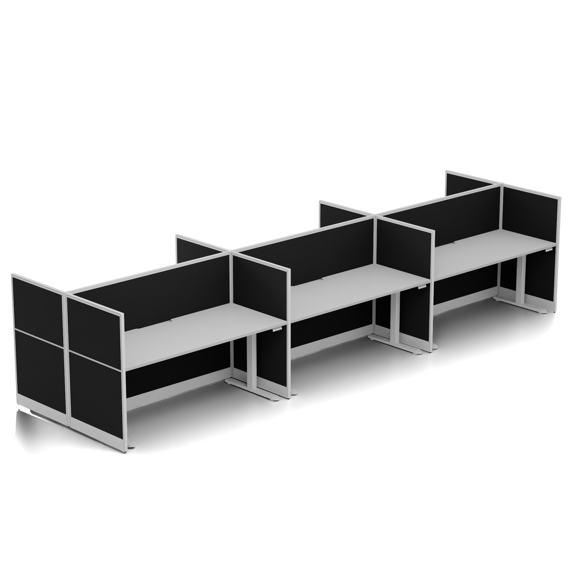Quiet Height Adjustable 6 Person Double Desk + End Screens