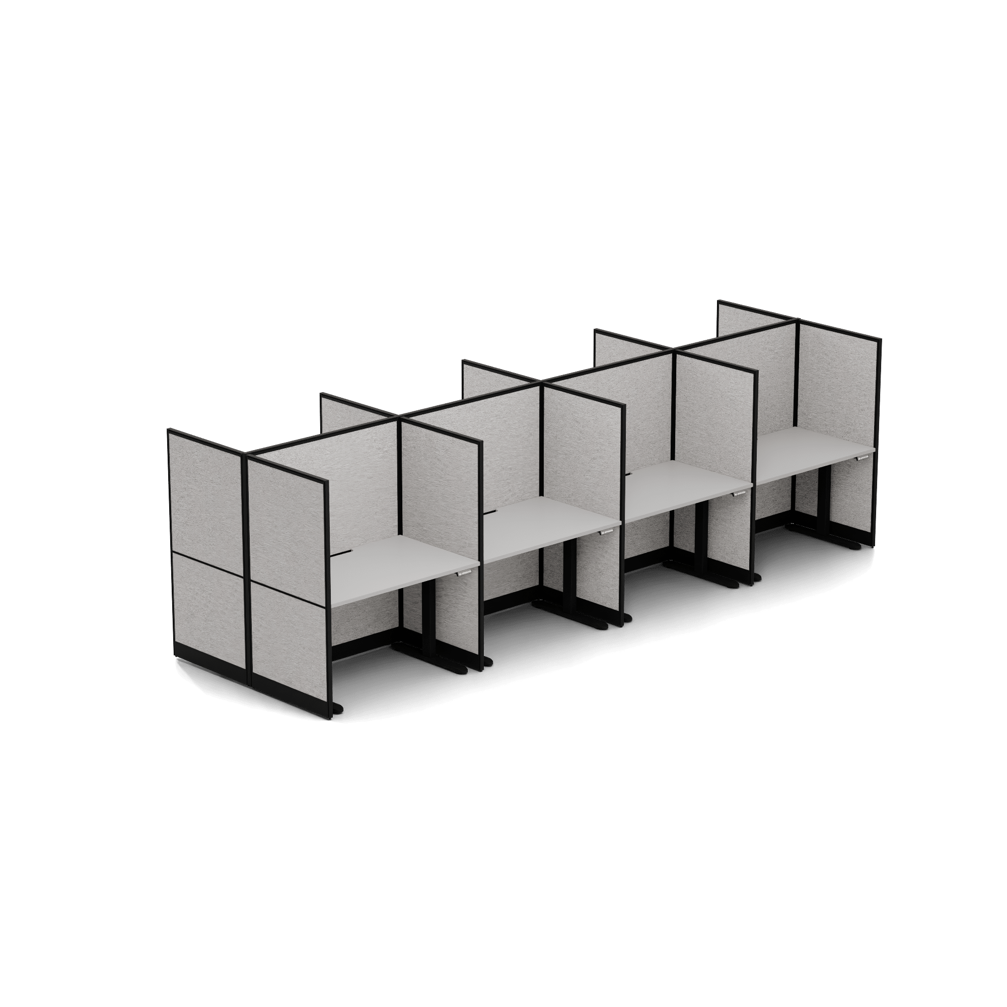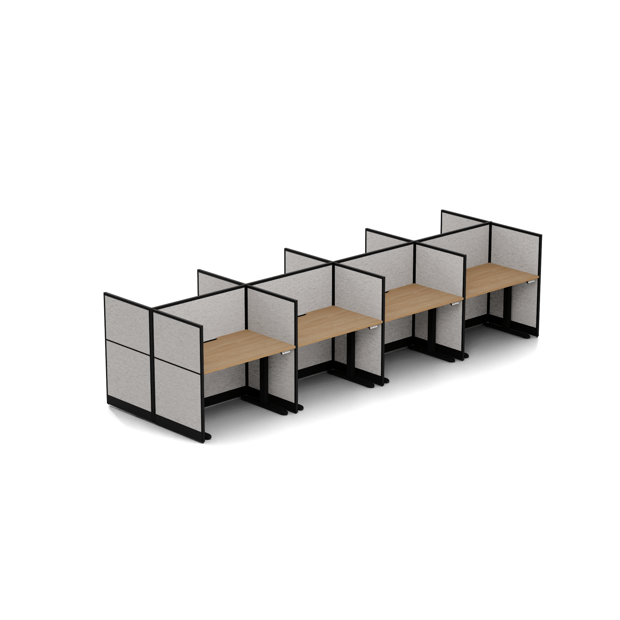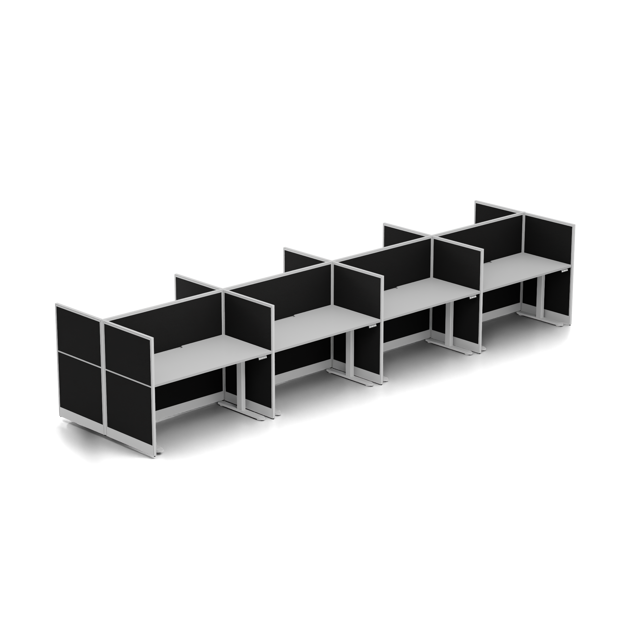 Quiet Height Adjustable 8 Person Double Desk + End Screens