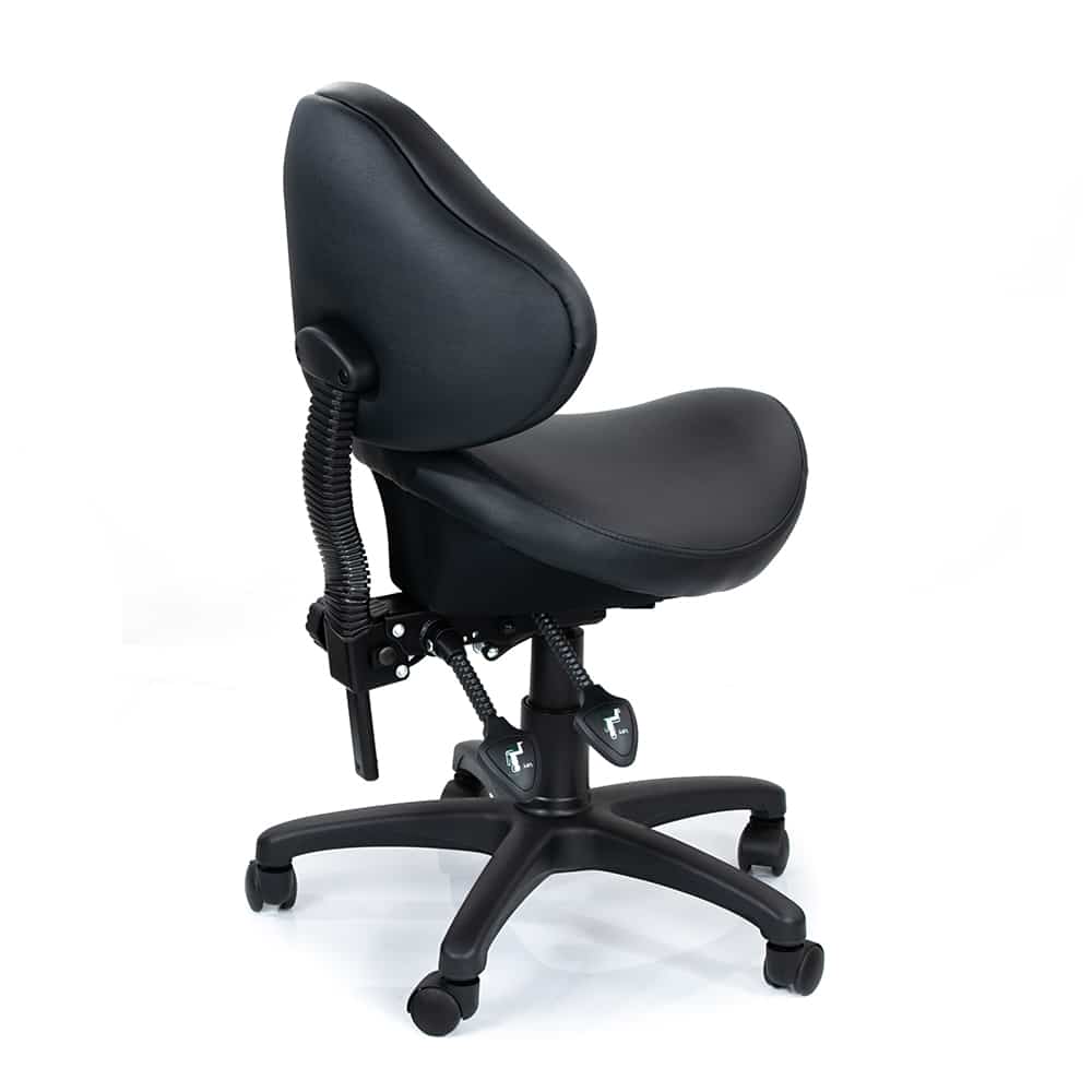 The Saddle 2.0 Office Chair is a great flexible seating option for those needing a mobile chair with more freedom to move. The small size of the chair make it super mobile on its castors, without any armrests to get in the way. This makes it great for labs, massages and any other profession that requires a lot of mobility while seated. It comes in black PU, making it easy to clean. It has a backrest which is height adjustable, along with having adjustable seat and back tilt. If the backrest is a bit too big for you, try the Saddle 1.0, which comes without a backrest.