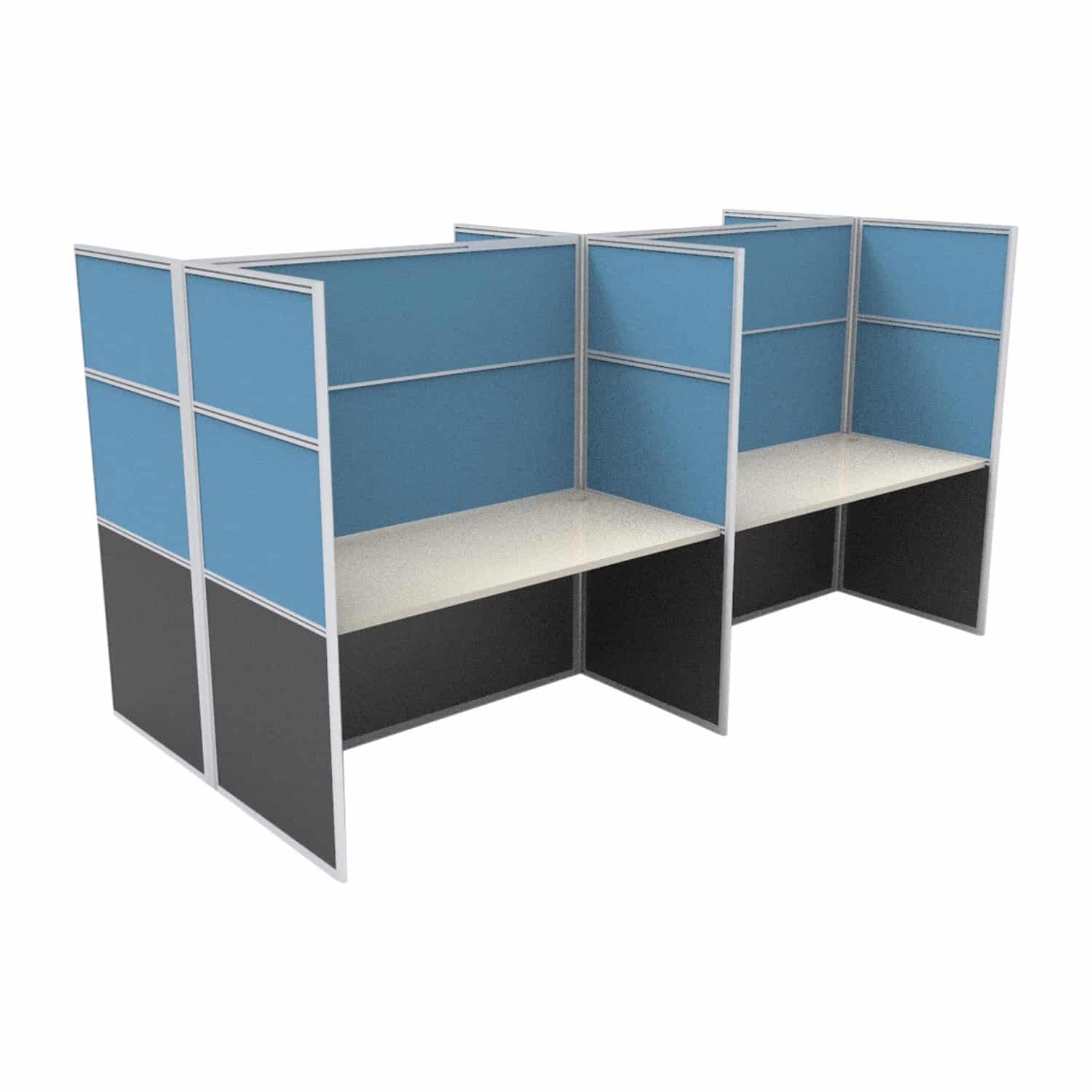 Super Office Screen 4 Person Double Desk with End Screens