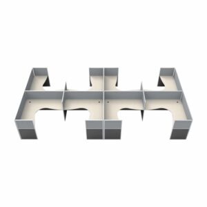 This acoustic workstation pod is ideal for large or small office fit-outs seeking a blend of openness and individual focus. Whether you’re designing a new layout or upgrading an existing space, the Super Screen 8 Person H Pod with End Screens offers a scalable solution for your team’s needs.