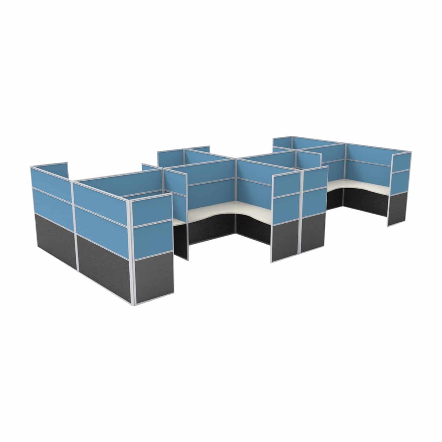 Each workstation is equipped with a durable white desktop, supported by integrated screen-hung legs. The configuration is offered in multiple sizing options to suit your floorplan, and adjustable feet ensure stability on uneven surfaces.