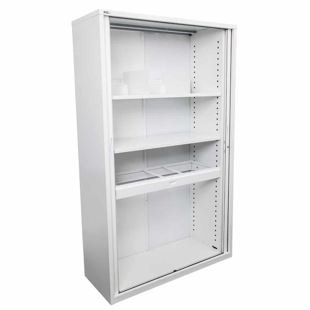 Tambour Storage Cupboard: Secure, Adjustable Storage with Space-Efficient Design