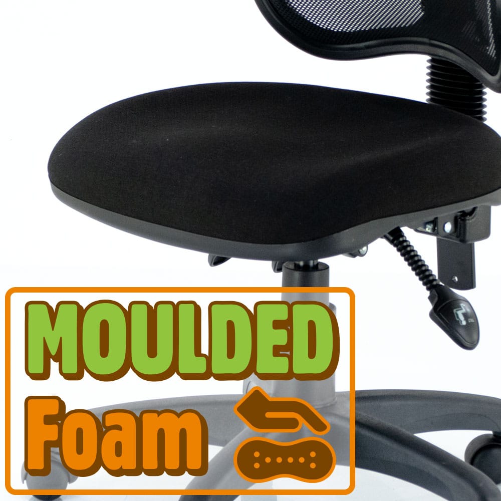 With its suite of ergonomic controls, you can make sure your body is perfectly catered to. The task mesh is equipped with a 3 levered heavy dutymechanism which adjusts the seat tilt, the back angle and the seat height. The back height is also adjustable, to fit anyone of any size, and the back itself is made of breathable mesh which will contour the shape of your back to give you support where you need it. This, along with its wide seat with moulded high density foam, make it not only a comfortable chair, but a chair you can adapt to meet your specific ergonomic needs. This package includes a drafting kit, making it great for high bars and tables, and it is available as a task chair as well.
