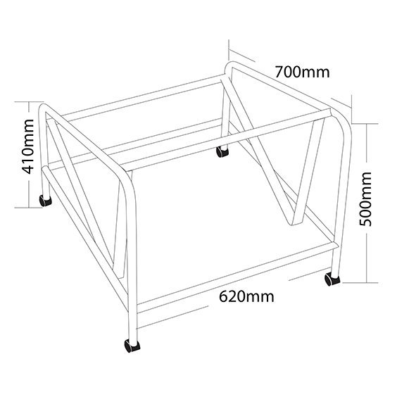 The Vinn trolley is a trolley made specifically for the Vinn chair, to help move them while they are stacked. This trolley can fit a maximum of 13 chairs at a time.