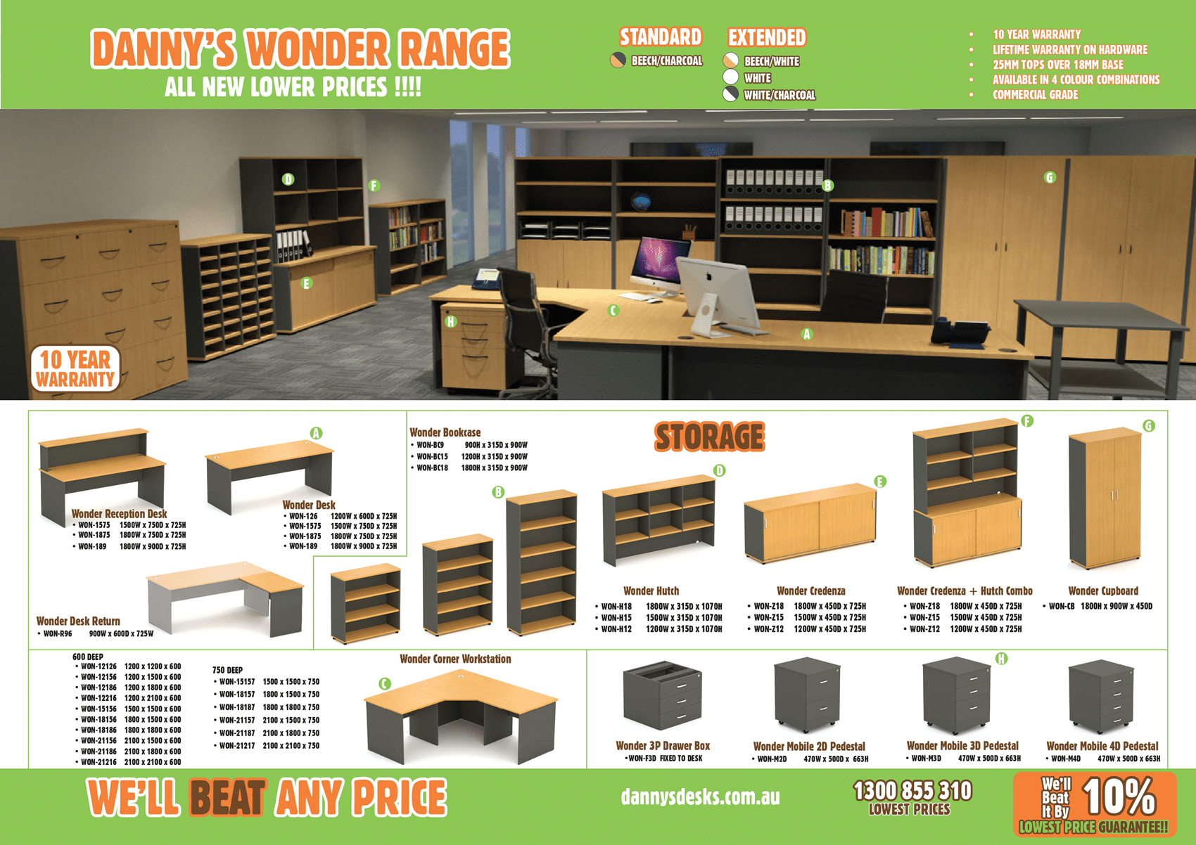 Built from durable, commercial-grade melamine using environmentally friendly E0 board, it’s made for daily use and long-term reliability. The beech accent and charcoal base finish pairs seamlessly with the rest of the Wonder range, and with multiple size options available, you can choose the right footprint for your space and storage needs.